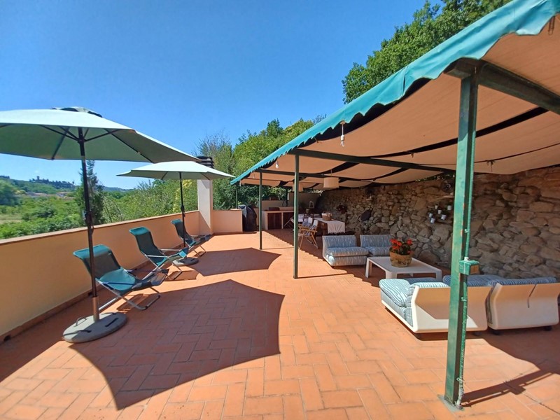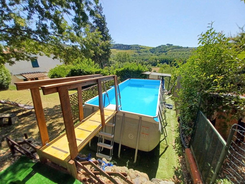 Vicinanze Montelupo Fiorentino. In campagna comoda per la vicinanza ai principali servizi e molto paesaggistica, bella porzione angolare di colonica in bifamiliare in stile tipico toscano, finemente restaurata con attenzione a rispettare l'originaria architettura con finiture in cotto, travi a vista e pietra serena originali. La casa che è divisa in due unità immobiliari, ha un ampio giardino e terreno circostante con bellissima e vivibile terrazza attrezzata, oltre a piscina fuori terra. Ciascuna unità è disposta su due livelli, piano terra e primo costituita da ampia cucina, sala con camino, doppi servizi, finestrati, soppalchi sottotetto. Oltre a locale cantina e stanza tecnica esterna. Si valuta anche una vendita separata delle due unità.
