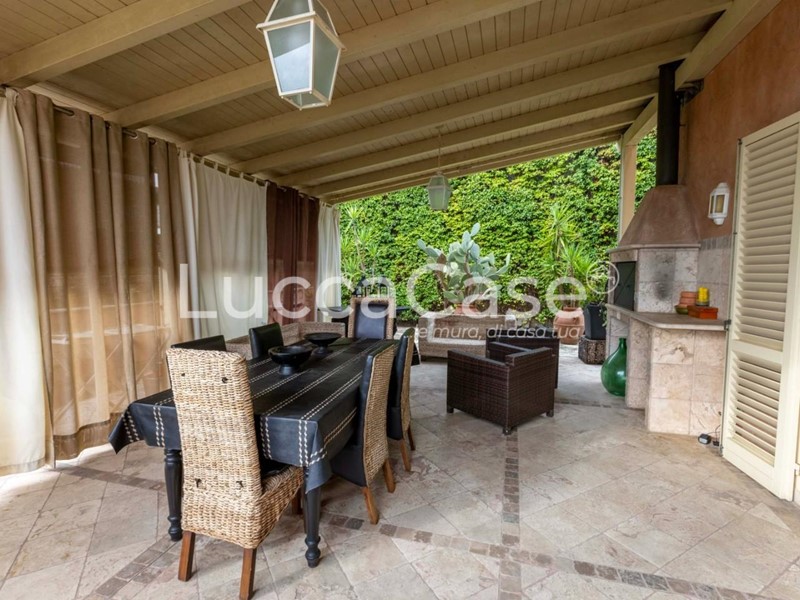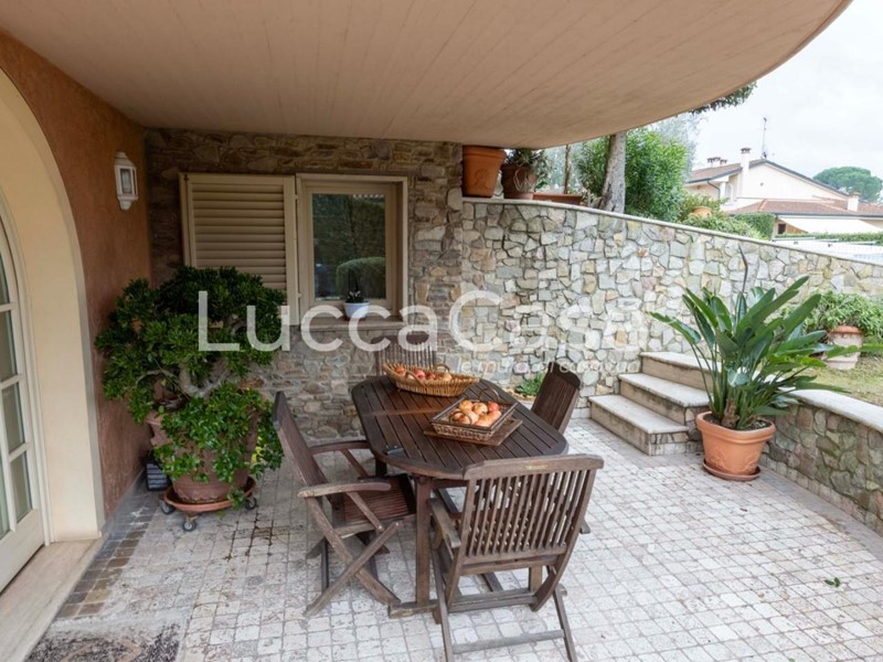 Un giardino di medie dimensioni che circonda la villa e due generosi garage completano la proprietà, si accede ad essi un cancello carrabile.
