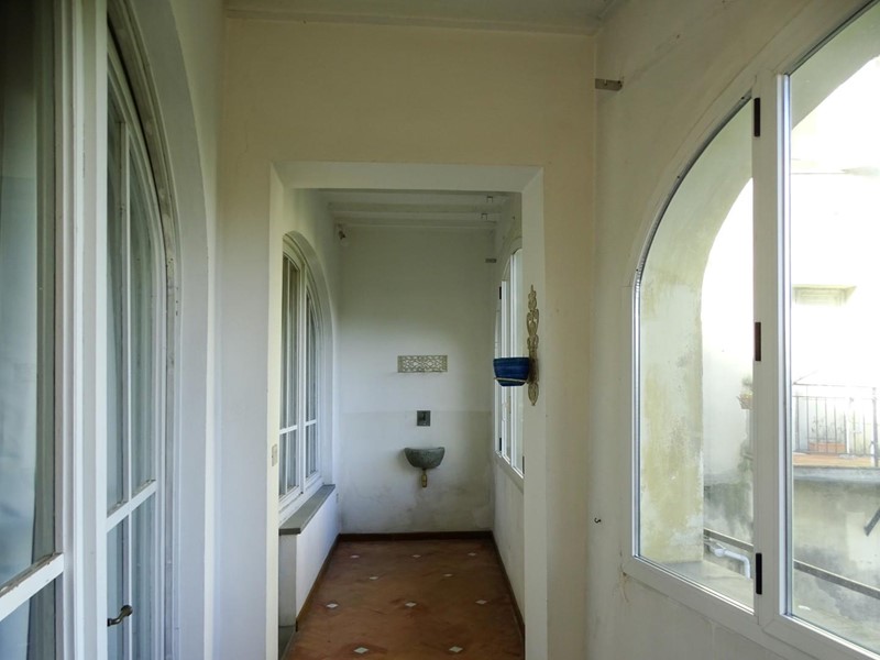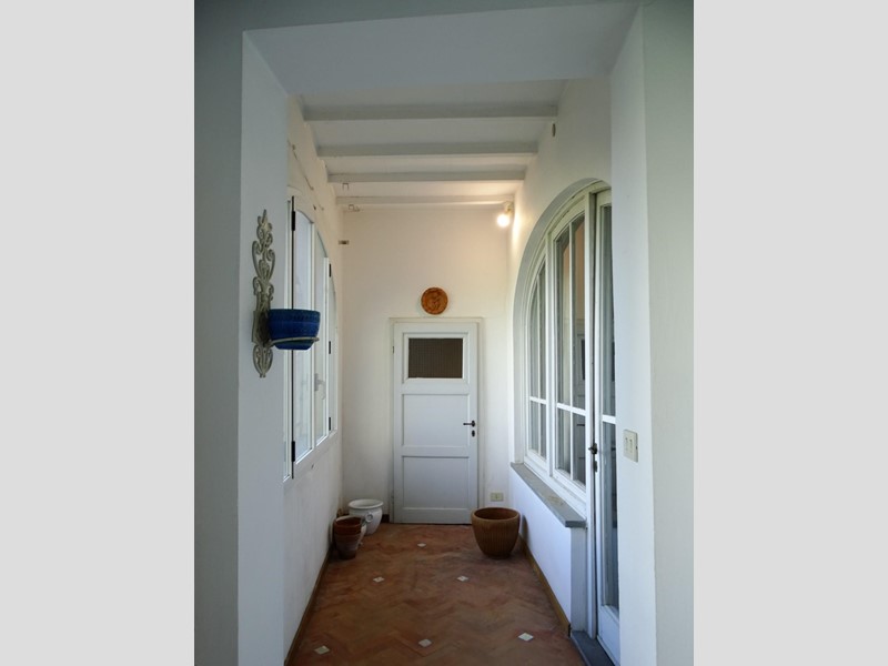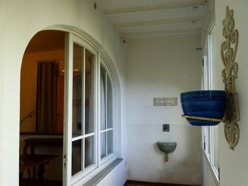 Dal salone e dalla camera da letto si accede, con ampie porte-vetrate, ad una loggia chiusa da grandi finestroni che consentono un’ottima illuminazione degli ambienti che vi si affacciano. La loggia è caratterizzata dalla presenza di una fontanella in pietra.