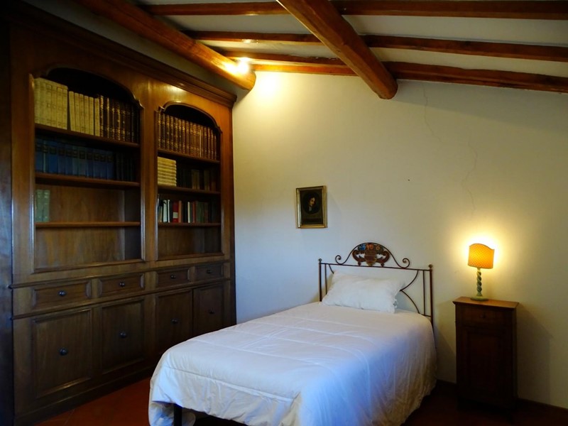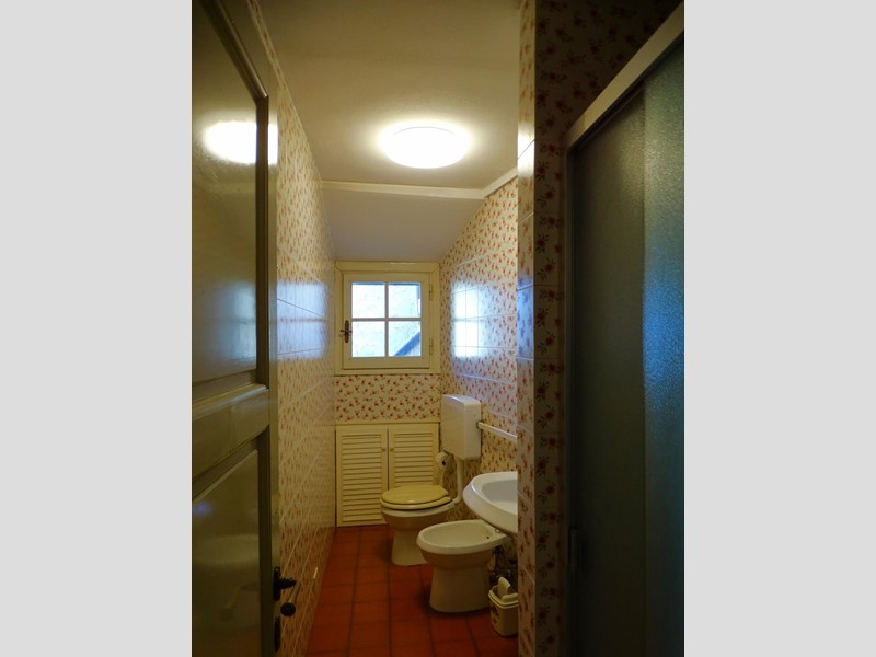 Dal disimpegno una scala conduce al piano superiore dove, allineate lungo un corridoio, si trovano due camere da letto, una stanza da bagno dotata di doccia, un piccolo locale caldaia.