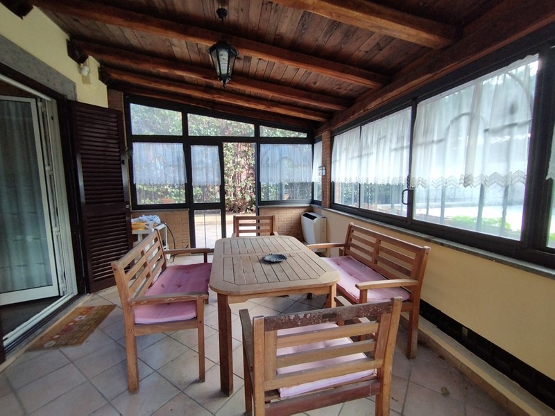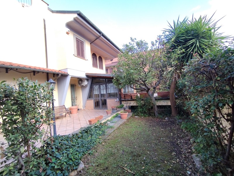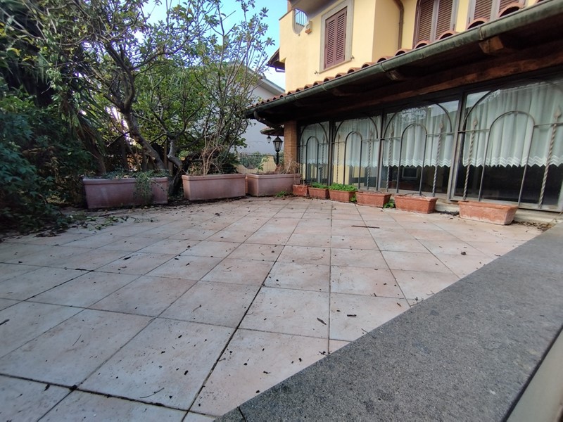 Villa bifamiliare a Ciampino, adiacente Via dei Laghi, nella parte più tranquilla di Via Firenze, proponiamo in vendita una porzione di villa bifamiliare composta da: PIANO TERRA: salone doppio, cucina abitabile, veranda di 14 mq circa, bagno e zona a terrazzo e giardino di 130 metri quadri circa, che gira su tre lati; 1° PIANO: due camere da letto matrimoniali e doppi servizi; 2° PIANO: studio leggermente mansardato ma abitabile, bagno, balcone di 3 metri quadri circa e terrazzo di 18 metri quadri circa; PIANO SEMINTERRATO: Sala hobby di circa 160 mq con box. L'immobile è stato edificato negli anni '90 ed è antisismico. Si trova in ottimo stato. Tutti gli infissi sono in alluminio con doppio vetro e la sicurezza è garantita da persiane semiblindate su tutte le finestre. Il riscaldamento è termoautonomo. Non ci sono spese condominiali. Classe Energetica G - IPE 175