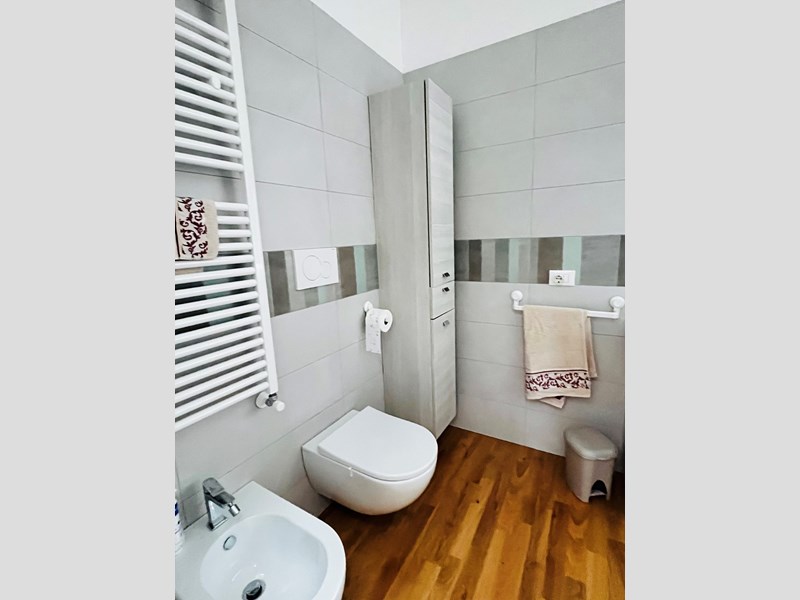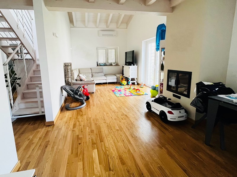 Attraverso una scala tutta in legno, con sottoscala chiuso, si accede al soppalco di circa 50mq con altezza di 2.55 mt residenziale, composto da due camere di cui una con cabina armadio, un ripostiglio ad altezza e un bagno patronale con box doccia.