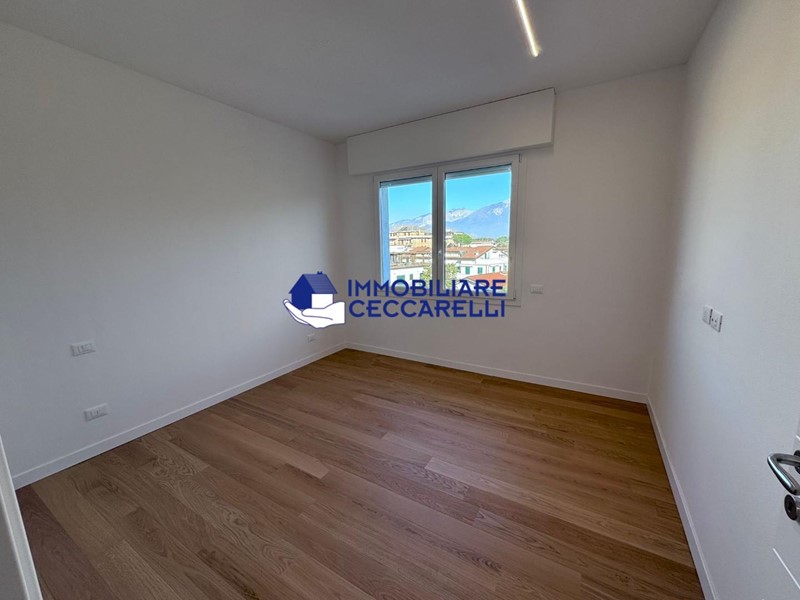 Ronchi - centrale e a soli 50 mt dal mare, all'interno di un piccola palazzina, bellissimo appartamento al piano secondo composto da ingresso, pranzo - soggiorno con cucina a vista, disimpegno, due camere matrimoniali, due bagni e due balconi con splendida vista sulle Apuane.