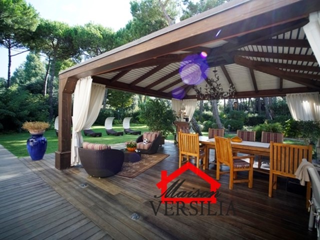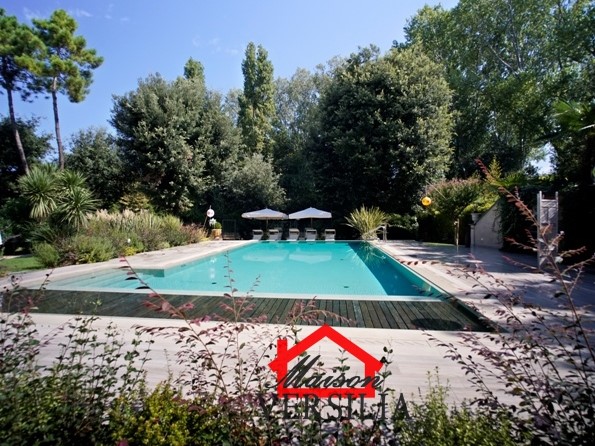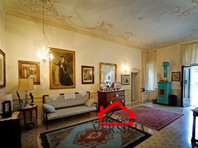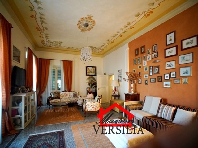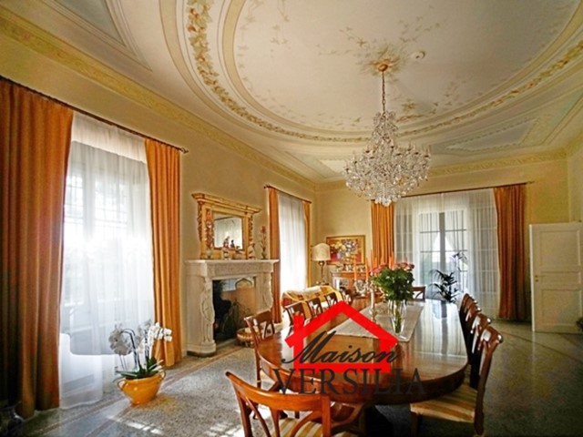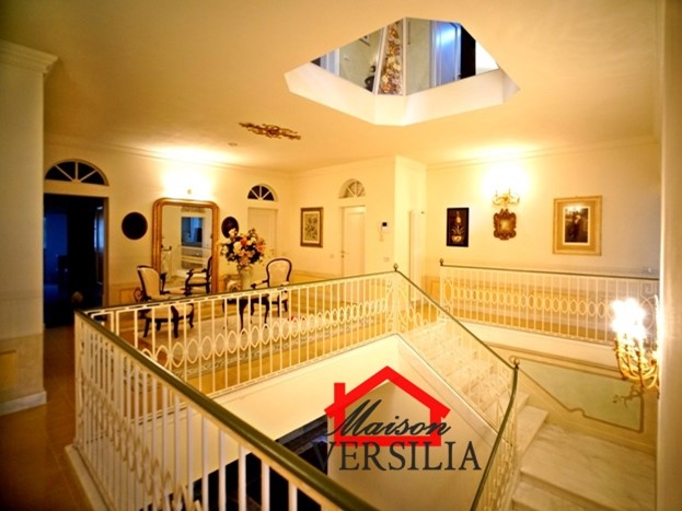 Ubicata a pochi passi dal lido del mare, vendesi maestosa villa di 1.000 mq oltre 10.000 metri di parco.\n\nL'immobile vanta una storia antica: venne costruito nel 1923 ed era in origine di proprietà di una famiglia conosciuta in tutto il mondo grazie al loro marchio nell'alta moda sartoriale italiana.\n\nNel 2008 è stato ristrutturato pur mantenendo lo stile architettonico originario, ed è stata costruita la piscina oltre al campo da tennis.\n\nLa villa si sviluppa su tre piani: piano terra, piano primo e secondo piano.\n\nRifinita con materiali di alto pregio, consta internamente di 10 suite e 10 bagni, oltre soggiorni, sala da pranzo e living, lavanderia, stireria e zona adibita ad alloggio della servitù.\n\nIl piano rialzato si apre con un elegante ingresso, che porta alla zona giorno, ampia e luminosa, con pavimenti in graniglia genovese, splendidi soffitti finemente affrescati, un bellissimo camino che rende la sala calda e accogliente e la cucina con sala da pranzo. Sempre su questo piano si trova una raffinata suite con bagno annesso e salottino di pertinenza. Qui è anche ubicato un piccolo appartamento indipendente per i domestici, più un ulteriore bagno per gli ospiti, e una zona lavanderia e stireria. La splendida scala in marmo bianco antico e vetro decorato, perfettamente mantenuta, conduce al piano primo dell'immobile, il cui soffitto è interamente affrescato. Su questo piano si trovano quattro eleganti suite con bagni annessi, di cui una con un incantevole loggiato privato, un ulteriore bagno, uno studio e la meravigliosa e ampia terrazza panoramica con vista mozzafiato sul mare vicinissimo. Al secondo piano dell'immobile è ubicata la mansarda, composta da due suite con bagni annessi, un salotto, una camera da letto singola, un bagno, un ripostiglio e una stanza con predisposizione per la realizzazione di una cucina.\n\nAttorno a questa magnifica villa, si sviluppa un meraviglioso giardino di 10.000 mq, perfettamente curato con prato all'inglese e abbellito da siepi, alberi di vario fusto e romantici fiori perenni. A rendere il giardino il luogo perfetto per rilassarsi e godersi la bella stagione, la piscina di recente costruzione, circondata dal solarium, perfettamente arredata con ogni comfort. Annesso alla piscina, un bagno con uno spogliatoio dotato di docce esterne. \n\nCompletano questa magnifica proprietà una casetta adibita a ripostiglio e un campo da tennis regolare. - Maggiori Dettagli: Porta blindata, Campo da tennis, Piscina, Giardino, Allarme, aria condizionata, Videosorveglianza, Camino