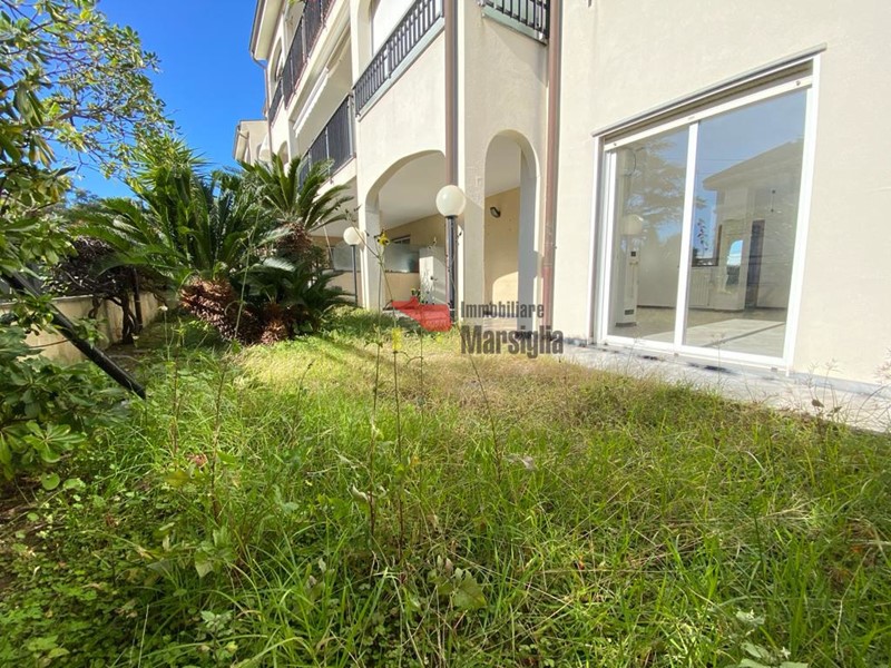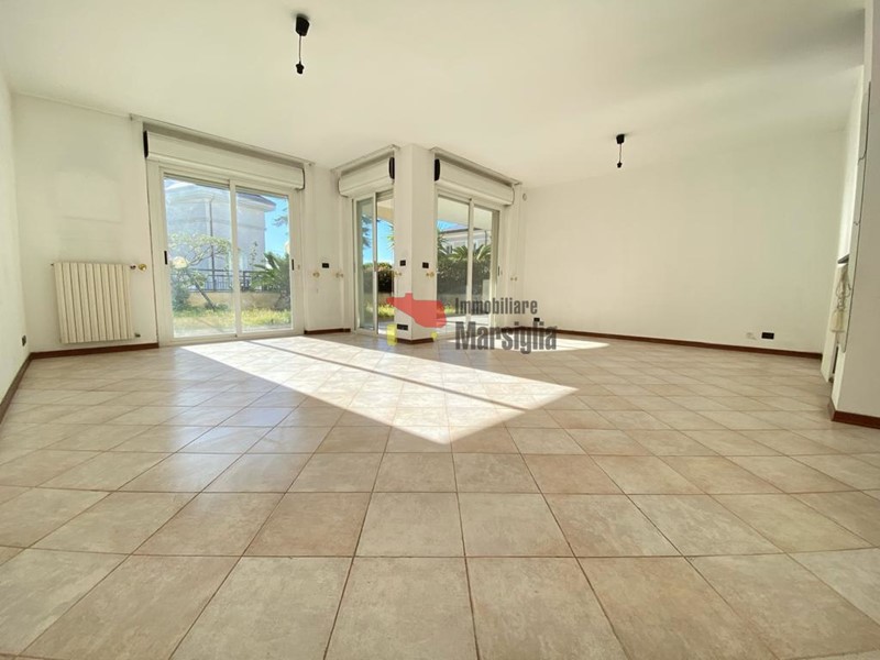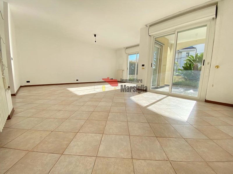 L'appartamento al suo interno è composto da ingresso su disimpegno, ampio soggiorno, due camere da letto di cui una matrimoniale, cucina abitabile e doppi servizi. Doppio giardino in parte terrazzato.