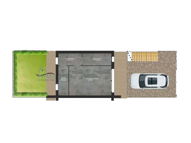 Completa il tutto garage con locale tecnico di 42 mq e piccolo giardino.