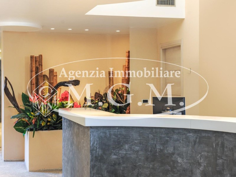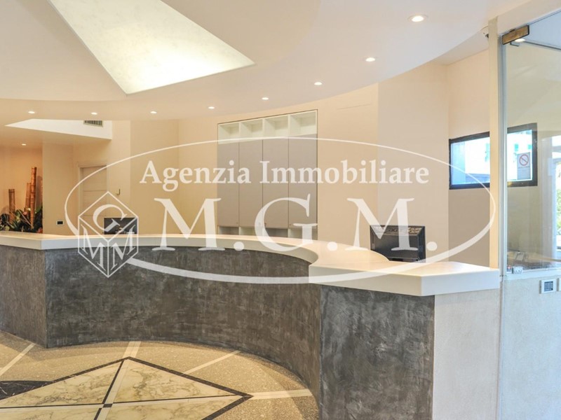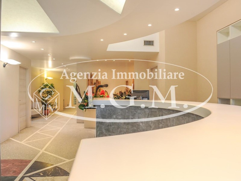 - Al piano terra, di mq. 1.000, si trova un ampio ingresso con reception, tre sale per l'accoglienza dei clienti, servizi igienici, un lungo corridoio, vari uffici, bagni, sale riunioni e scale per i piani superiori e il seminterrato.