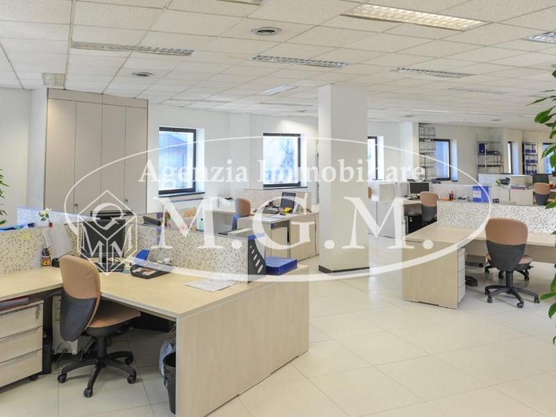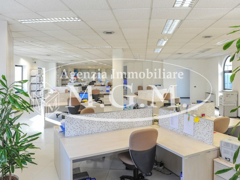 - Al primo piano di mq. 850, troviamo gli ampi locali adibiti ad uso Uffici, vari servizi igienici, archivio, oltre ad una spaziosa terrazza di 100 mq. sopra l'ingresso del lato est del fabbricato.