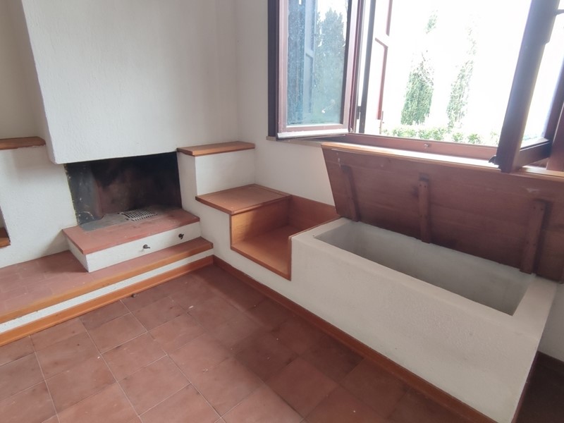 Primo piano: tre camere e due bagni. Una delle camere e dotato da una finestrata molto panoramica mentre un'altra ha un balcone panoramico. Completa la proprietà il bosco di circa mezzo ettaro. Ottima posizione. Situazione unica.