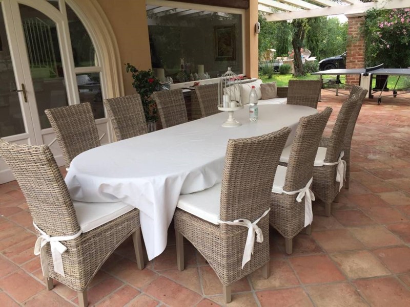 L’ altra unità è così disposta: Al piano terra troviamo la cucina abitabile, Salotto che si affaccia sulla grande Veranda con tavolo e divani, tutto con vista piscina.