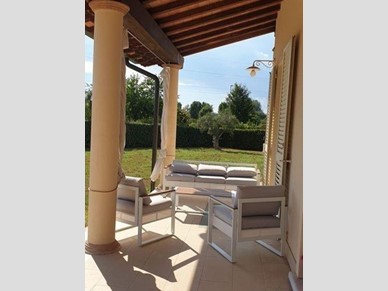 A confine di Forte dei Marmi, a 2,5 km dal mare, disponibile per l'affitto stagionale bella Villa unifamiliare di nuova costruzione (2020) con la Piscina fuori terra di 10X6mt.