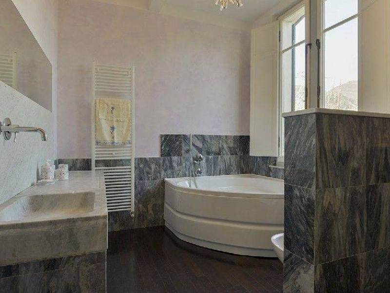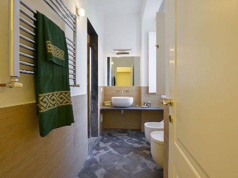 Dall'atrio una scala in pietra di marmo bianco di Carrara conduce al piano superiore COMPLETAMENTE RISTRUTTURATO dove a mezzo piano troviamo un bagno con doccia (nuovo), salendo al piano troviamo una camera matrimoniale gran suite con bagno/doccia e vasca idro, altre due camere matrimoniale/doppia di cui una con bagno/doccia personale.