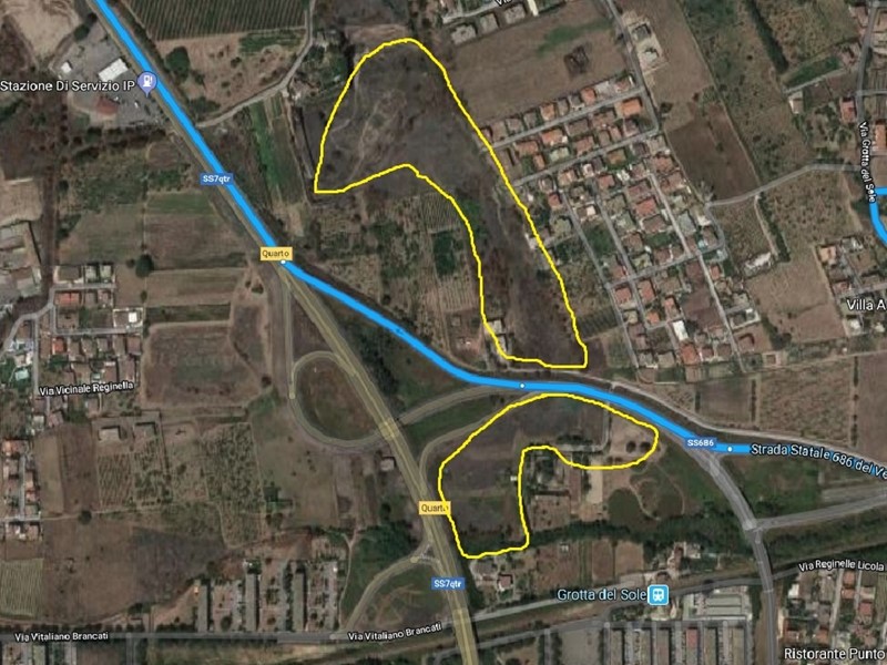 GIUGLIANO - via Grotta del Sole. Suolo agricolo completamente pianeggiante di circa 7.300 mq in prossimità degli svincoli della Variante Domitiana ( uscita tangenziale di Napoli "Monteruscello nord") e nelle immediate adiacenze della stazione della ferrovia Cumana di Quarto, fermata "Grotta del Sole", di centri commerciali, di scuole, di centri sportivi e servizi vari. Possibilità di acquisto di particelle di diverse pezzature da 200, 500, fino a lotti di 14.000 mq. Prezzo  and euro; 147.000
