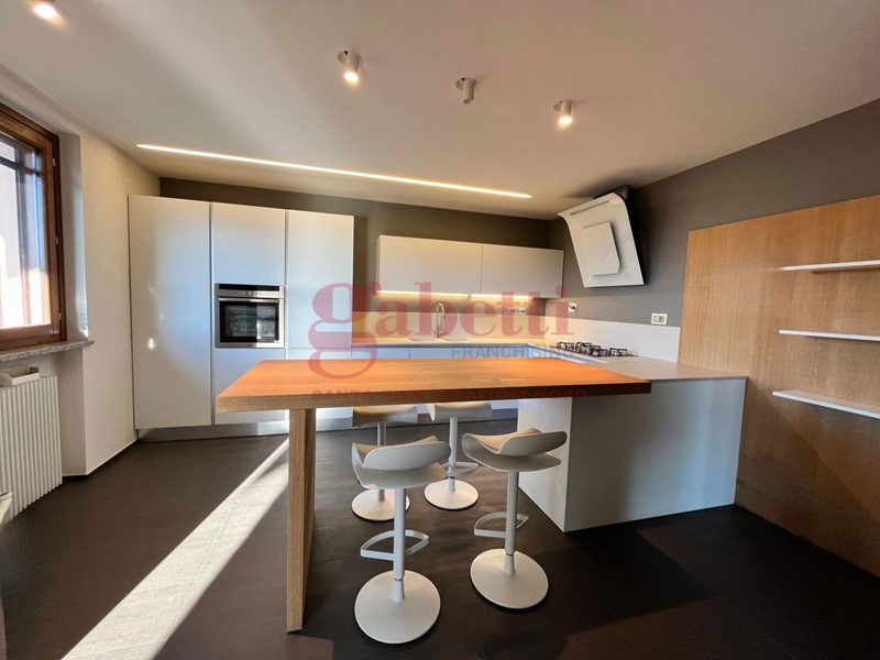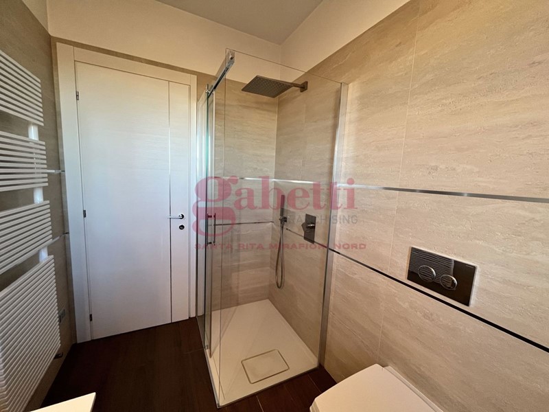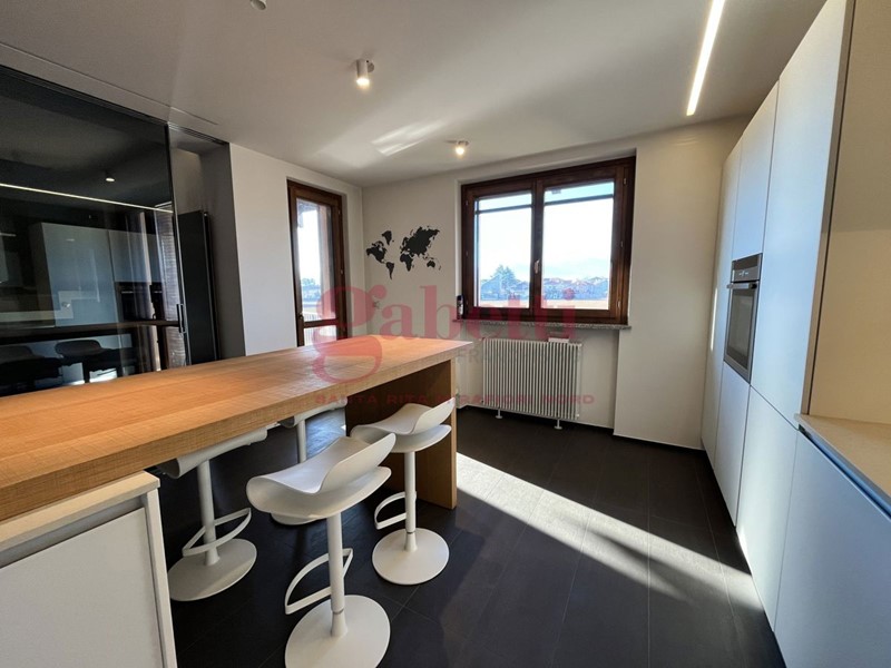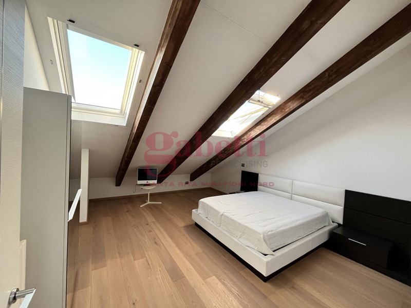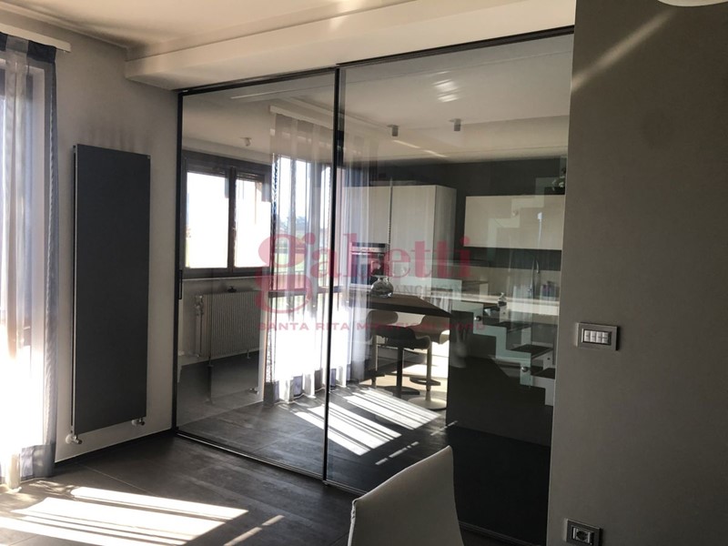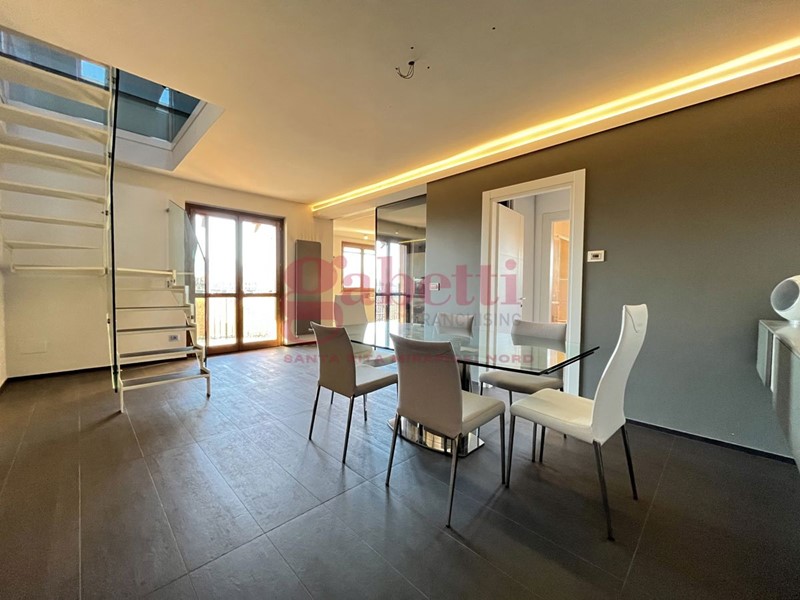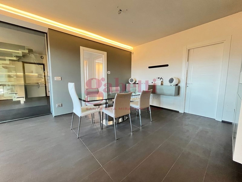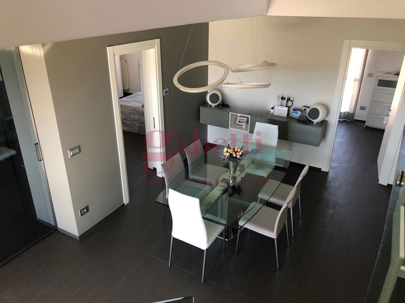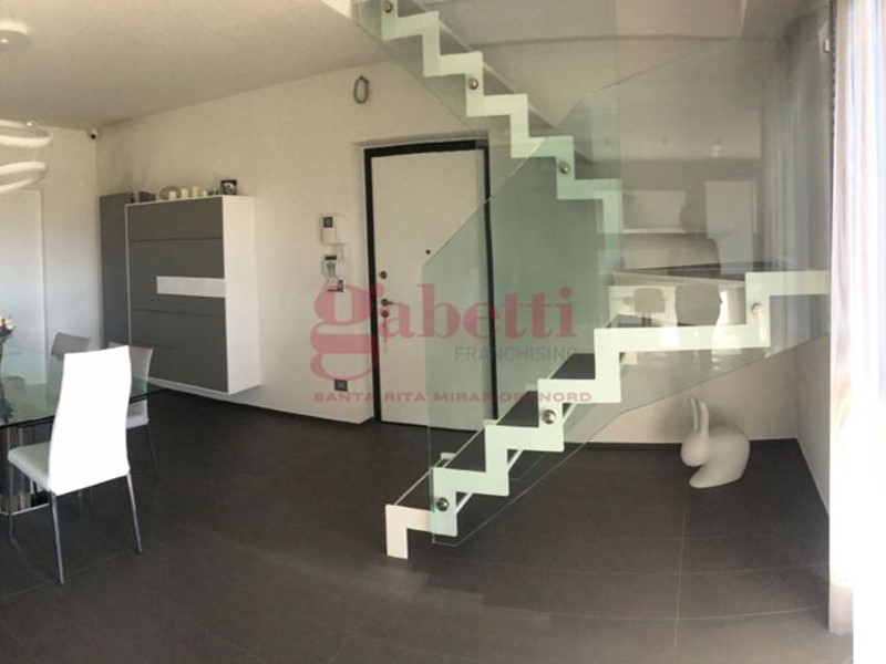 ? splendido appartamento con rifiniture di alto standing ed ottimamente accessoriato: portoncino blindato, videocitofono, impianto di antifurto, scala interna in vetro e acciaio, infissi esterni in legno a taglio termico, inferriate di sicurezza, zanzariere, infissi interni moderni, splendida parete mobile di divisione cucina/ salone Rimadesio in vetro, pavimentazioni in gres porcellanato al piano primo, in parquet al piano superiore, termoarredi di design, vasca circolare di grande effetto nel servizio al piano superiore, arredi servizi su misura in materiali di pregio, grandi e numerosi velux al piano mansardato elettrificati con controllo anche da remoto;