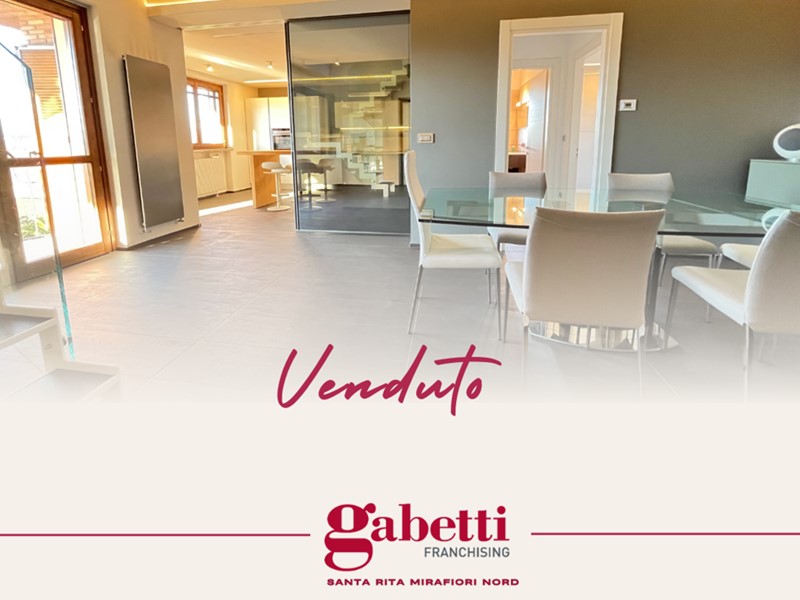 VOLVERA - Le agenzie GABETTI di corso Agnelli 66 e corso Sebastopoli 243 propongono in vendita, VIA MONTE GRAPPA, zona tranquilla e residenziale, in villa quadrifamiliare di recentissima costruzione (2010), SPLENDIDO appartamento moderno di 6 LOCALI di 180 mq SU DUE LIVELLI collegati da scala interna, con doppi servizi e TERRAZZI e splendidi affacci aperti sul verde.