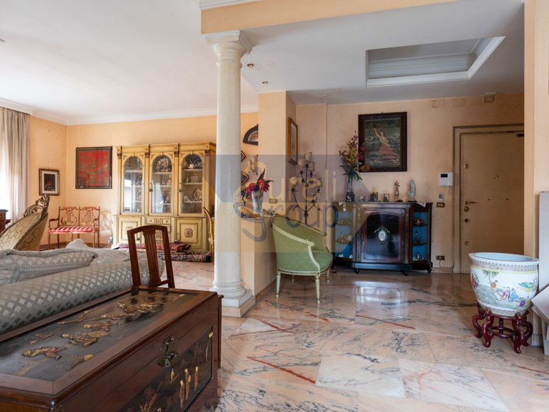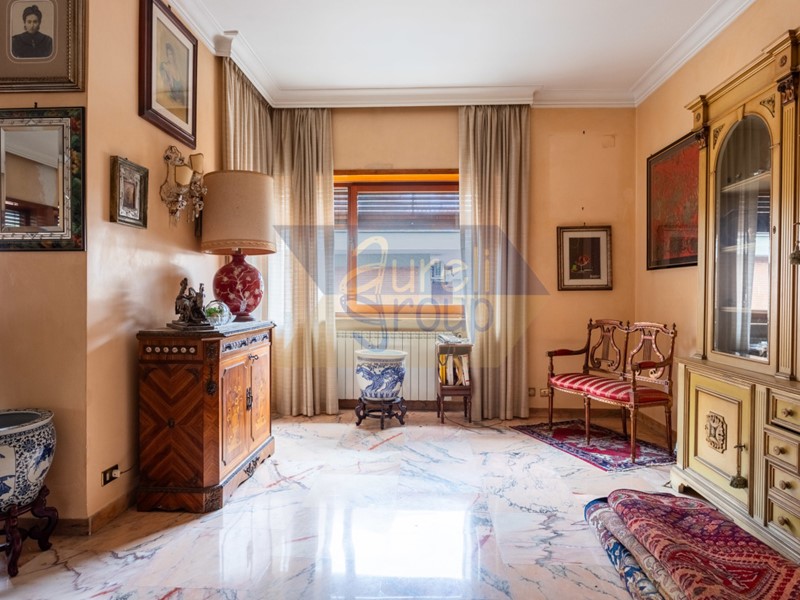 In zona San Giovanni - Villa Lais, Via G. Costamagna, in complesso signorile in cortina del 1965 di 4 piani con parco privato e servizio di portineria, 3° piano di 200 mq, più 3 terrazzi di 8 mq, di 10 mq e di 15 mq, soffitta di 10 mq. Ingresso con salone triplo a vista, cucina tinello di 20 mq, 3 camere, cameretta, doppi servizi, armadi a muro. Buono stato interno, con pavimenti in marmo portoghese nel salone e in parquet per i restanti vani, ed infissi in legno. Sistema di allarme completo. Tripla esposizione, affaccio tutto esterno. Termocentralizzato. Spese condominiali Euro 300,00 mensili, incluse quelle di riscaldamento. Possibilita' di box auto. CL G IPE 175.