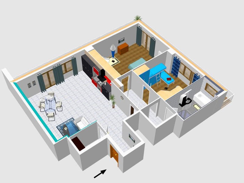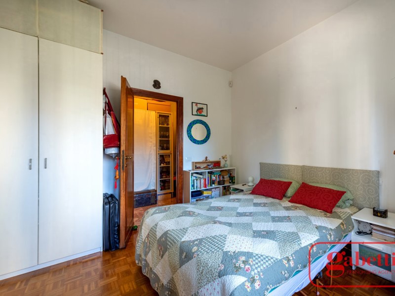 La zona notte si cela al cospetto degli ospiti grazie ad una porta dopo la quale un lungo corridoio ci accompagna in due camere da letto un servizio e un indispensabile ripostiglio.