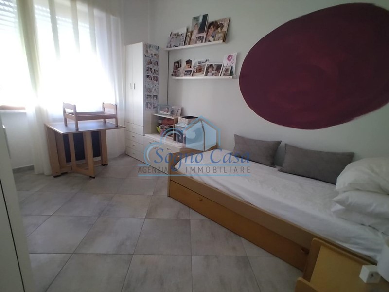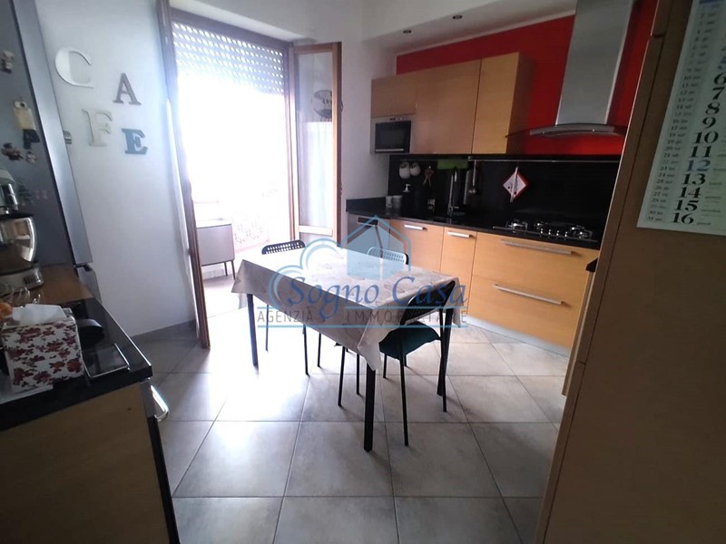 Appartamento posto al terzo e ultimo piano di una palazzina da poco riqualificata nelle sue parti esterne, ben tenuto e completamente recintato. L'appartamento e' così distribuito : ingresso, soggiorno, cucina abitabile, disimpegno, tre camere da letto di cui due matrimoniali e una cameretta, due bagni di cui uno nella camera padronale, due comodi balconi attrezzati. Cantina nel sottotetto oltre a un comodo garage e due posti auto completano la proprieta'. Riscaldamento autonomo, climatizzato.. L'immobile si presenta in ottimo stato e subito abitabile.