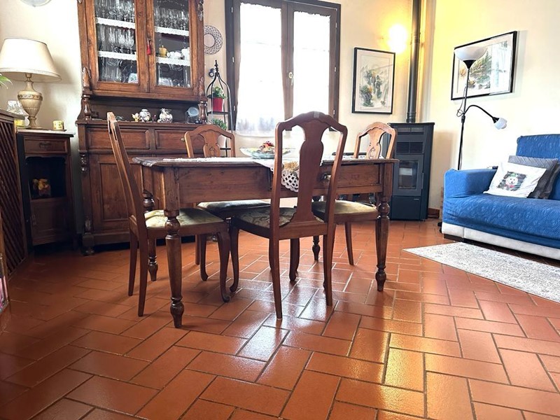 Si compone di : ingresso, sala pranzo con camino ed angolo cottura, disimpegno notte, con ripostiglio/lavanderia, camera matrimoniale con cabina armadio,cameretta e servizio finestrato con doccia , al piano seminterrato cantina di proprietà e garage.