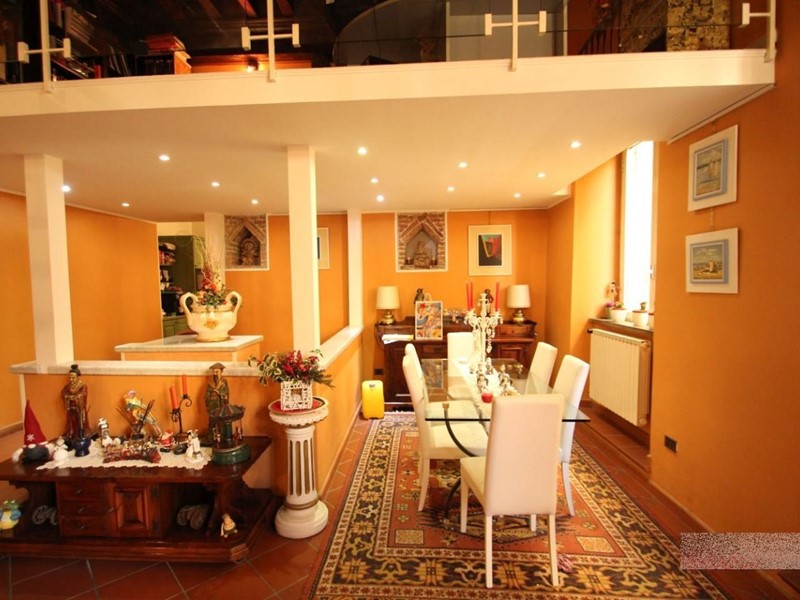 Oggetto di grande fascino così composto: ingresso indipendente da cui si accede al piano primo che presenta un doppio salone di circa 50 mq con caminetto e soffitto a cassettoni d'epoca, soppalco che si affaccia sulla zona giorno adibito a studio, cucina abitabile, disimpegno, camera matrimoniale con bagno con doccia e finestra, seconda camera matrimoniale, camera singola, bagno con doccia e finestra, ripostiglio/lavanderia.