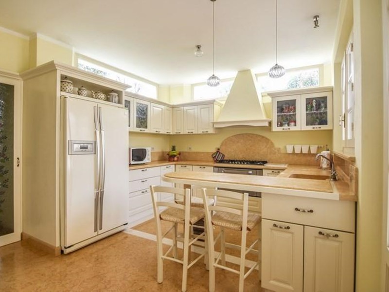 La Villa è inoltre dotata di: Sistema di allarme, Connessione internet Wi-Fi, Finiture e marmi di pregio, Aria condizionata, Cancello automatico, Parcheggio interno per tre auto.