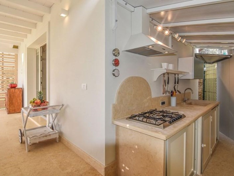 La dependance: Con ampia veranda fornita con tavolo da pranzo, divano da esterno, cucina esterna, all'interno sono presenti un divano letto matrimoniale ed un bagno con doccia.