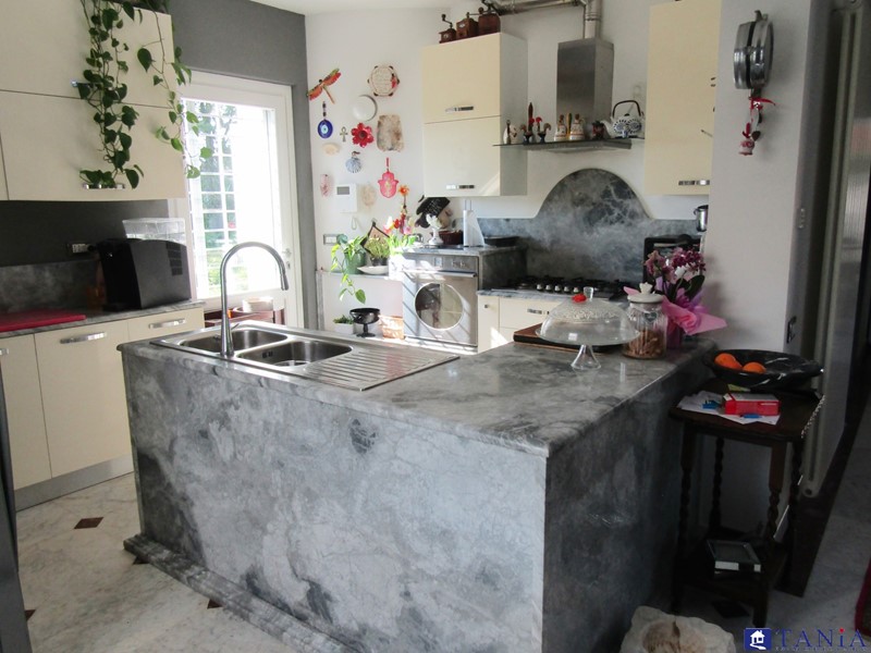 A Marina di Carrara, in zona dislocata dal centro urbano, vendiamo Villa di pregio ed elegante. L' immobile si articola su 2 livelli ed è circondato da 1500 mq di giardino privato. Al piano terra troviamo un salone con cucina a vista, 2 camere, uno studio, 2 bagni; al piano superiore, mansardato, vi sono 3 vani e un bagno. La casa è corredata da loggiati esterni e verande che consentono di vivere all' aperto. Vi è una piscina fuori terra nel giardino. Dotata di aria condizionata, aspirapolvere centralizzata, pozzo per irrigare, sistema di allarme. Rifinita con marmi pregiati e particolari raffinati.\n\nAgenzia Immobiliare Tania nasce nel 1992 in Marina di Carrara grazie alla volontà e alla passione del fondatore Giovanni Ilari. Il sogno che ha dato vita alla nostra impresa è stato, fin dalle origini, quello di condividere l'emozione di cercare e trovare un posto chiamato casa, un'attività, un ufficio e altro ancora. Ancora oggi portiamo avanti la nostra missione per conto di una clientela trasversale che spazia da persone in cerca di un'abitazione, un'attività, un ufficio, ai proprietari che desiderano vendere il proprio immobile, la propria attività il proprio ufficio il proprio terreno. I nostri servizi non si limitano alla sola compravendita ma includono una serie di attività specifiche, per le quali è richiesto un livello di competenza superiore che va dalla fiscalità alla consulenza bancaria, alla consulenza tecnica, catastale ed urbanistica, conoscenza e capacità per consulenza di nuove costruzioni e ristrutturazioni.\nL'efficacia del nostro lavoro è dimostrata dai risultati ottenuti nel tempo: migliaia di clienti in più di 30 anni di attività si sono rivolti a noi con profitto. Tania ora sostituisce il padre, nella titolarità della ditta.\n - Maggiori Dettagli: Climatizzato, Sistema di allarme, Cucina Abitabile, Porta blindata