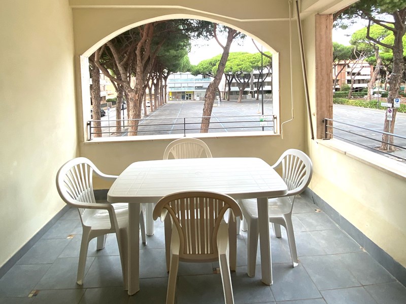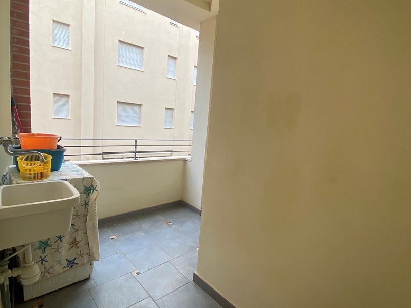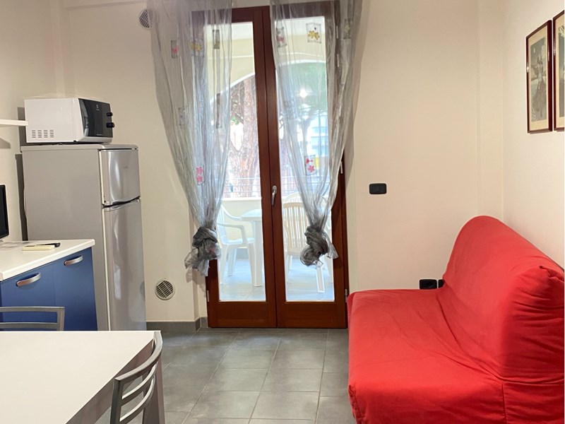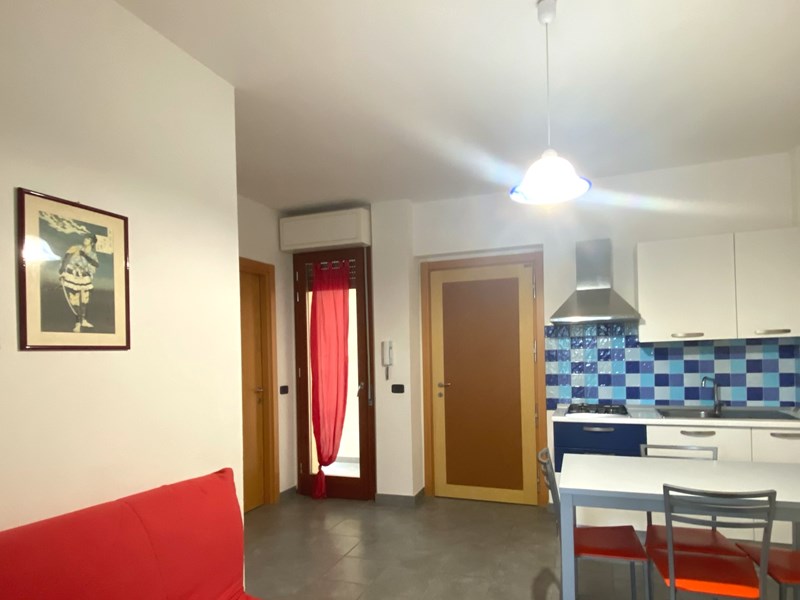 L'appartamento è formato da una camera da letto, bagno con doccia e finestra, soggiorno con angolo cottura. Dal soggiorno si accede ad una comoda veranda abitabile ed a un altro terrazzo di servizio comodo come tenditoio e dotato di piletta ed attacco per lavatrice. L'appartamento, con doppia esposizione, risulta essere fresco grazie allo scambio d'aria delle due porte finestre del soggiorno. Dotato di aria condizionata caldo/freddo. Comodo ed ampio ascensore che parte dal piano terra.