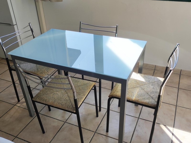 L’appartamento è completamente arredato (letto matrimoniale, comodini, Abat-Jour, armadio e cassettiera con 9 cassetti di ampie dimensioni, grande libreria, scarpiera, tavolo e sedie per 4 persone, divano-letto, faretti e piantana nella zona giorno), riscaldamento autonomo, porta blindata, doppi vetri, fibra FTTC, climatizzatore, zanzariere, angolo cottura dotato di forno grill-microonde di piccole dimensioni e frigorifero.