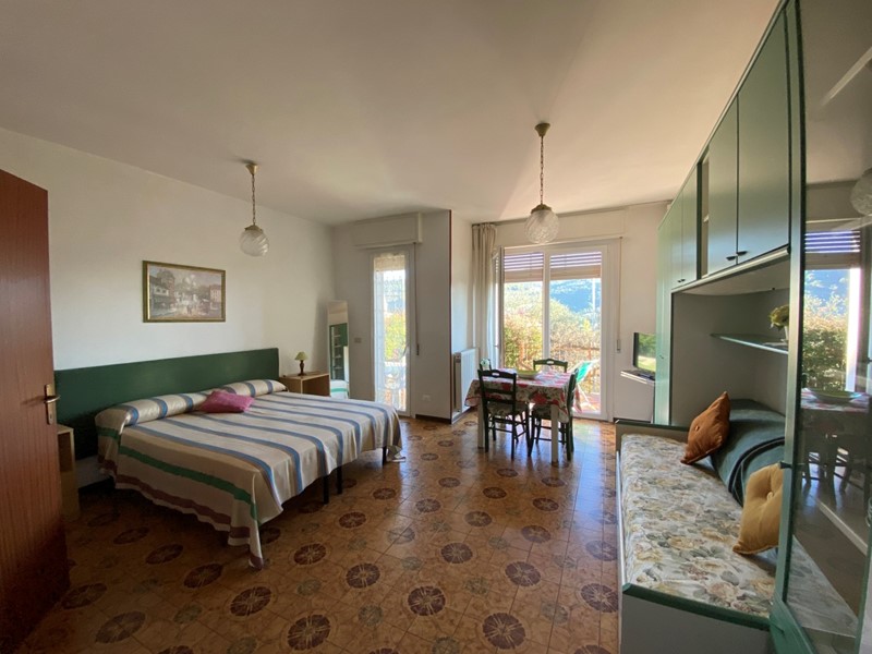 San Bartolomeo al Mare a 1,2 km dal mare proponiamo in affitto ad uso turistico appartamento monolocale con ampio terrazzo situato al piano rialzato ed è composto da ingresso, monolocale con un letto matrimoniale, un divano letto da due posti singoli, zona pranzo, angolo cottura completamente attrezzato, bagno finestrato con vasca e lavatrice ed infine ampio terrazzo. Durante i mesi estivi si può usufruire gratuitamente di una piscina circondata da piante e fiori.