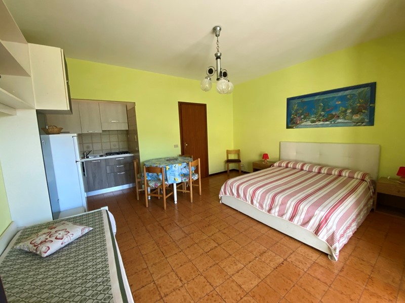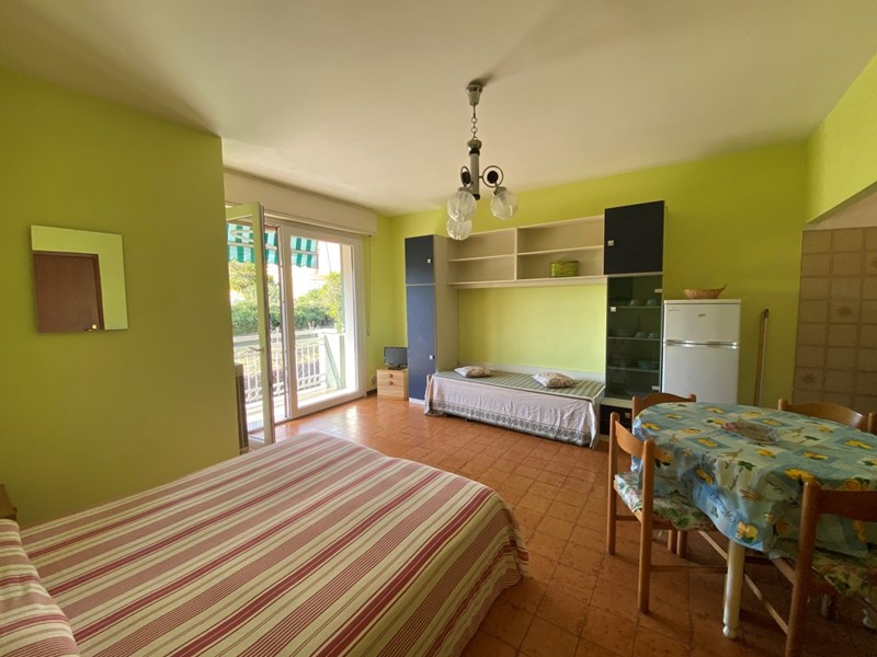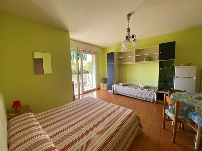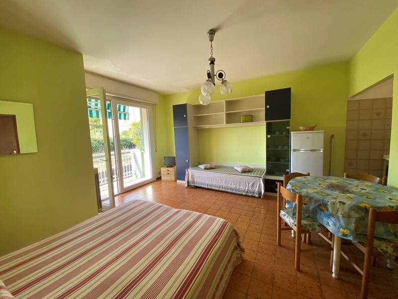 San Bartolomeo al Mare a 1,2 km dal mare proponiamo in affitto ad uso turistico appartamento monolocale con ampio balcone situato al primo piano senza ascensore ed è composto da ingresso, monolocale con un letto matrimoniale, un divano letto da due posti singoli, zona pranzo, angolo cottura completamente attrezzato, bagno finestrato con vasca e lavatrice ed infine balcone vista corte interna. Durante i mesi estivi si può usufruire gratuitamente di una piscina circondata da piante e fiori.
