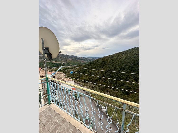 Tipica casa affiancata di paese su due livelli con doppia esposizione. L’immobile misura circa 80 mq. Il primo piano comprende una sala da pranzo con balcone, un cucinino e un bagno. Dalla sala da pranzo si accede alla camera da letto matrimoniale anch’essa con balcone e vista panoramica e a una cameretta.