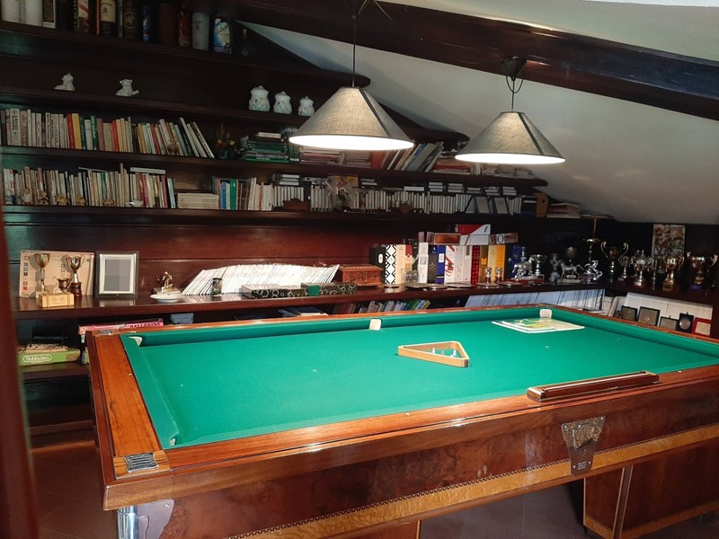Inserita in ottimo contesto residenziale, proponiamo bellissima villa singola circondata da giardino ben curato di circa 510 mq su 4 lati. La villa disposta su piani sfalsati, misura una superficie di 370 mq circa, oltre a 105 mq fra taverna e mansarda e altri 75 mq fra garage e locali di servizio. L'ampio ingresso principale si trova al piano rialzato e disimpegna il salone di 55 mq con camino e lo studio entrambi dotati di ampie porte finestre che danno accesso alla piacevole loggia esterna di 45 mq. Scendendo pochi gradini raggiungiamo il piano terra dove troviamo la cucina con accesso al giardino sul lato posteriore della casa, una bella sala pranzo con camino, un bagno di servizio e un'altra stanza usata all'epoca come camera per la servitù. Dalla sala pranzo 3 gradini ci conducono alla grande taverna con camino e dotata di un ampia finestra che dona molta luminosità all'ambiente.