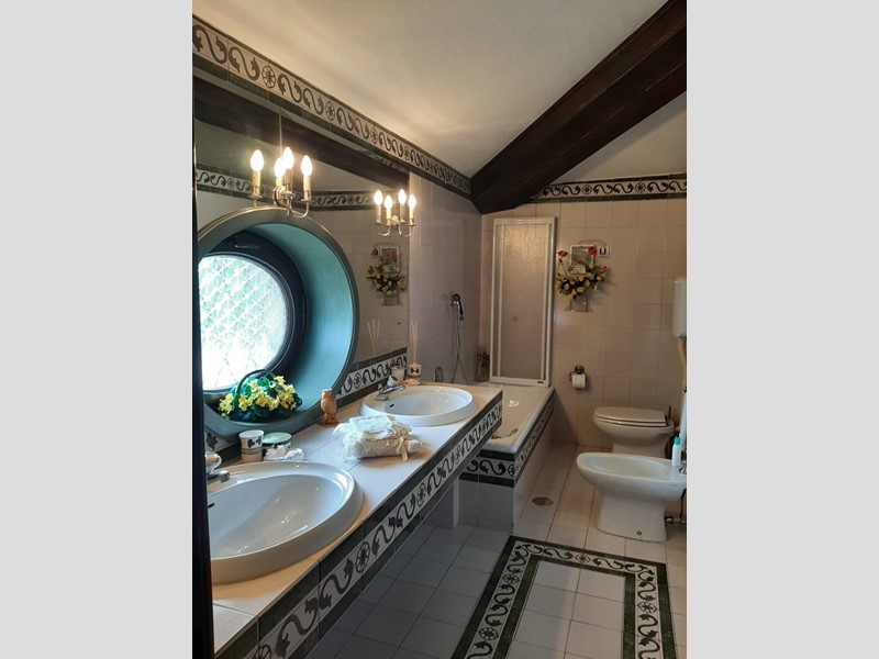 I 75 mq di locali di sevizio, collegati direttamente alla casa, sono costituiti da un ampia zona lavanderia, una taverna perfetta come cantina per la conservazione dei vini e da un grande garage con accesso dal vialetto ben ombreggiato grazie ad una piacevole pergola.