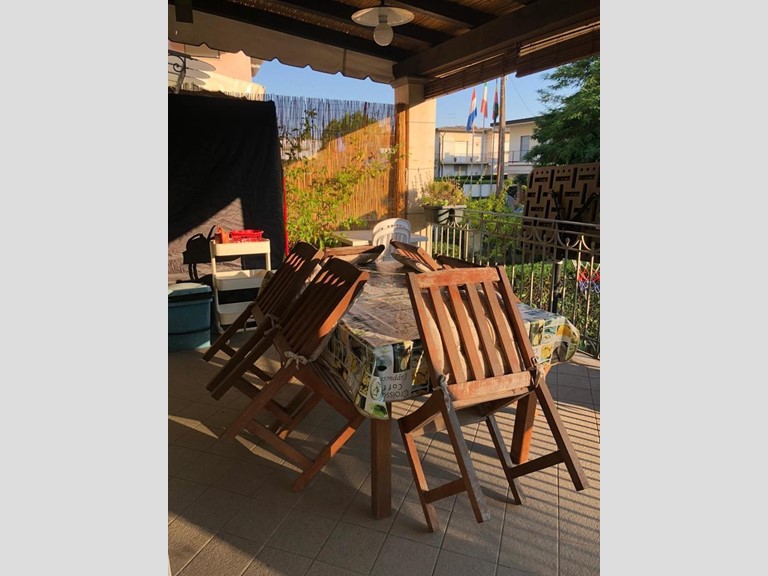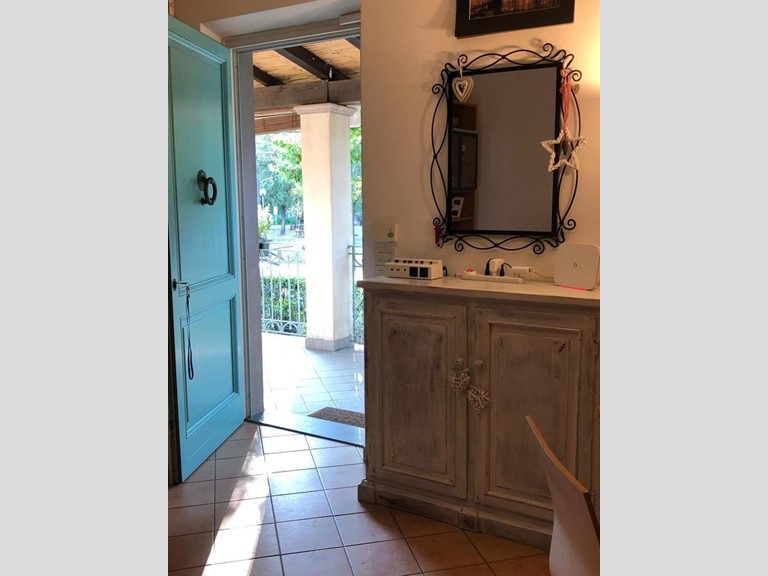 Grande terrazza coperta e attrezzata per soggiornare fronte e lato della casa, soggiorno luminoso con cucina a vista attrazzata e accessoriata, bagno di servizio (no doccia).
