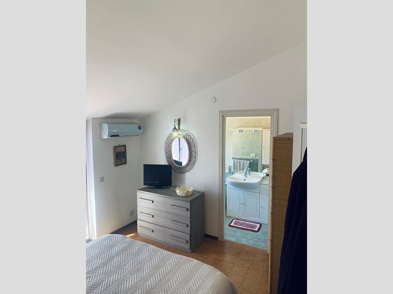 piano primo: camera da letto matrimoniale con aria condizionata, bagno con finestra, ampia doccia e solarium con tenda. I parcheggi sono interni al villaggio con accesso da cancelli automatici pedonali e carrabili. Dal villaggio attraverso vialetti pedonali si accede direttamente al mare