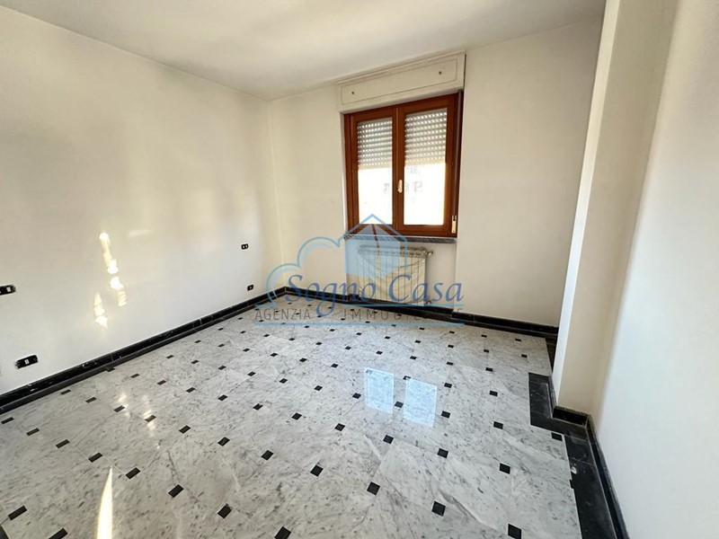 Marina di Carrara, comodo a tutti i servizi e a due passi dal mare, in contesto elegante appartamento sito al secondo piano servito da ascensore. L'immobile è composto da: ingresso su ampio e luminoso soggiorno con angolo cottura a vista con accesso a balcone, bagno di servizio con doccia e ventilazione forzata, disimpegno notte, camera matrimoniale con accesso al balcone, secondo bagno con finestra e vasca, cameretta. Ottime Finiture con marmi pregiati, infissi in legno con doppi vetri e porta blindata. Posto auto coperto interno alla proprieta alla quale si accede tramite cancello elettrico. L'immobile MAI ABITATO viene consegnato completamente libero da mobili.