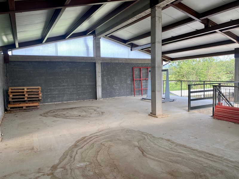 La struttura si compone di: - un fabbricato di 60 mq adibito per metà a portico coperto e per metà a box per due cavalli da cui si accede direttamente al paddock di 400 mq completamente recintato. - un fabbricato di 215 mq su due piani così disposti: due locali ad uso magazzino e bagno al piano terra e locale ampio ad uso fienile provvisto di montacarichi da 500 kg di portata per rotoballe di fieno al piano primo. - Tettoia aperta in ferro di 40 mq per ricovero attrezzi. - Lotto di terreno di circa 4.000 mq con tondino dal diametro di 16 m e campo di lavoro rettangolare di 60x 30 entrambi con fondo di sabbia.