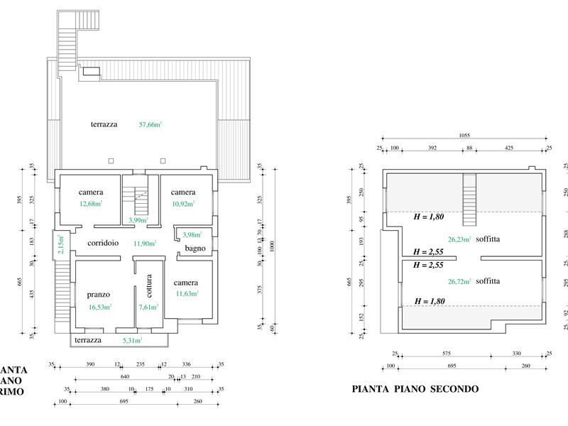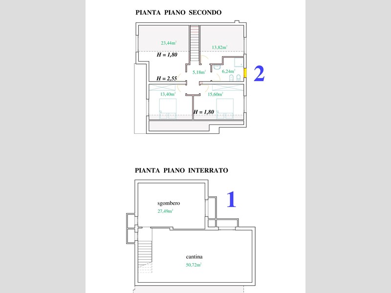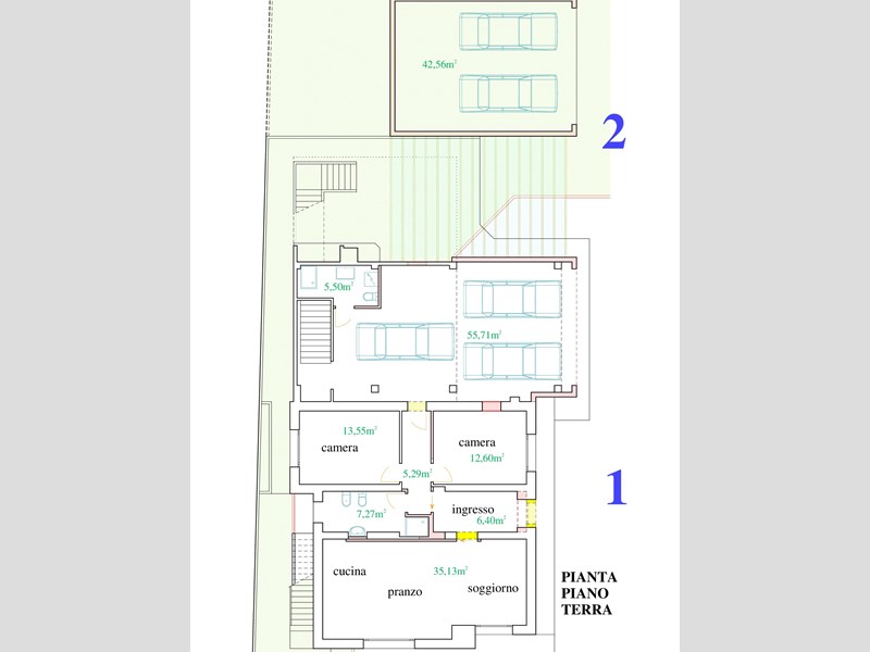 2 – APPARTAMENTO AL PIANO TERRA PRIMO E SECONDO (mq. 104 + 152 mq. accessori) CON SCOPERTO ESCLUSIVO (di circa 470 mq.)