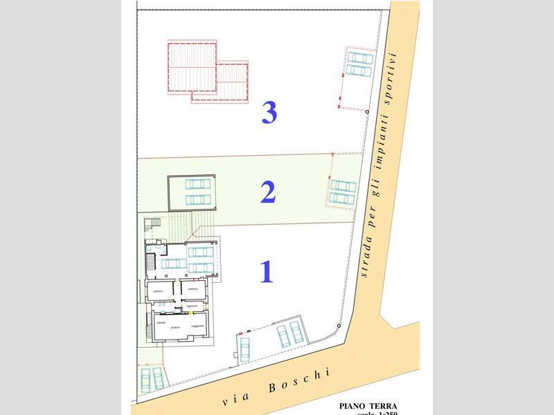 3 – TERRENO CONTIGUO ALLE UNITA’ 1 E 2, (di circa 975 mq.) CON POSSIBILITA' DI COSTRUZIONE FABBRICATO RESIDENZIALE DI OLTRE 650 mc. volume utile.