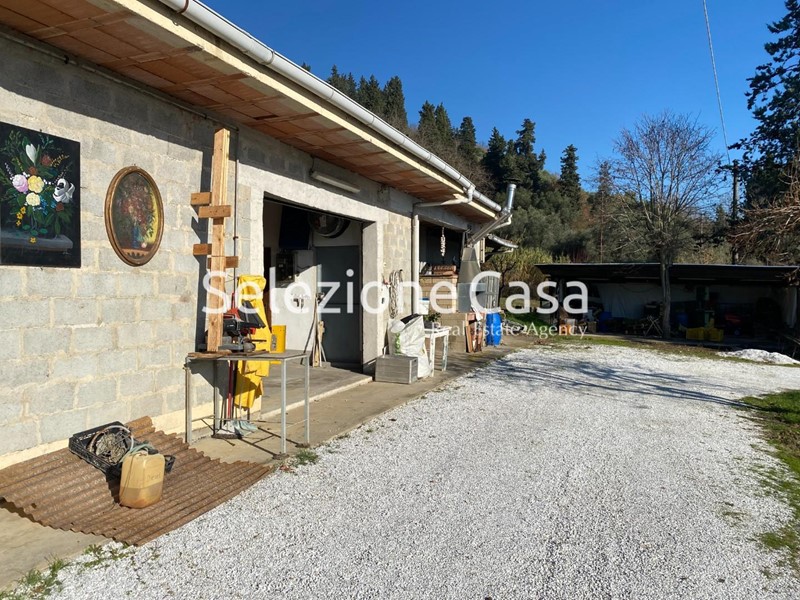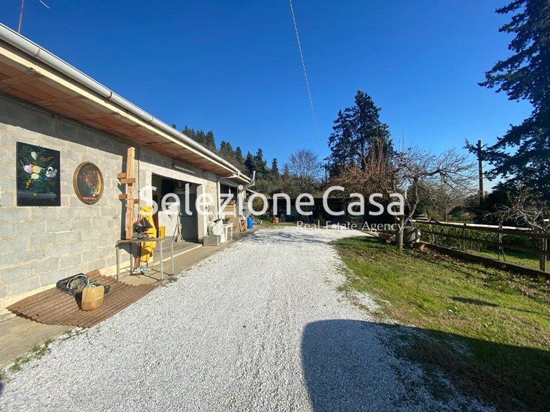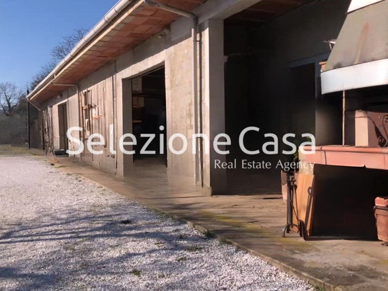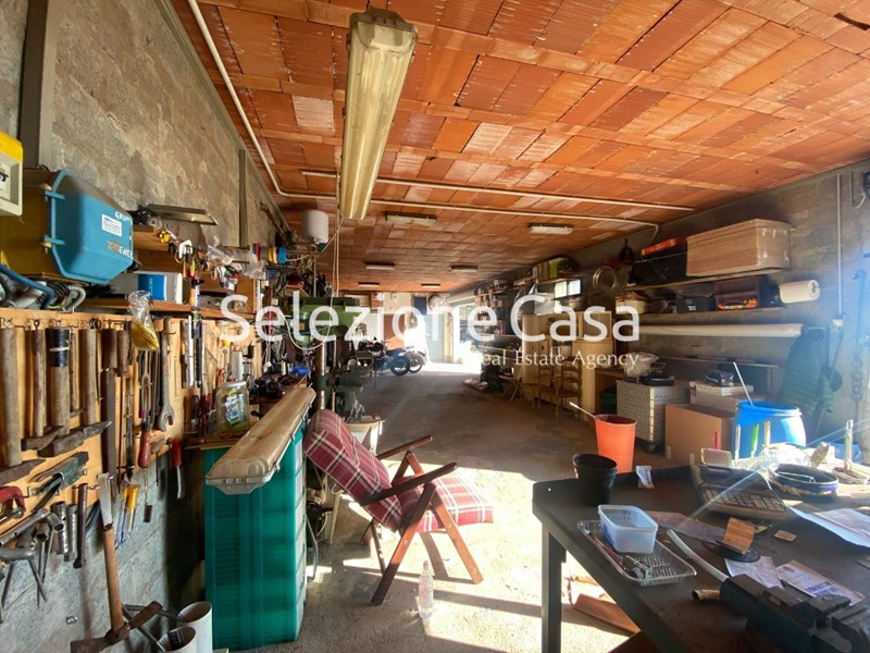 un fabbricato di 175 mq in solida muratura, di solo piano terra, attualmente ad uso artigianale e magazzino, corredato non dai soliti 500 mq di terreno edificabile, bensì da un terreno di oltre 3000 mq, pianeggiante, ai piedi della collina, ma alto a sufficienza da godere del panorama da est a ovest.