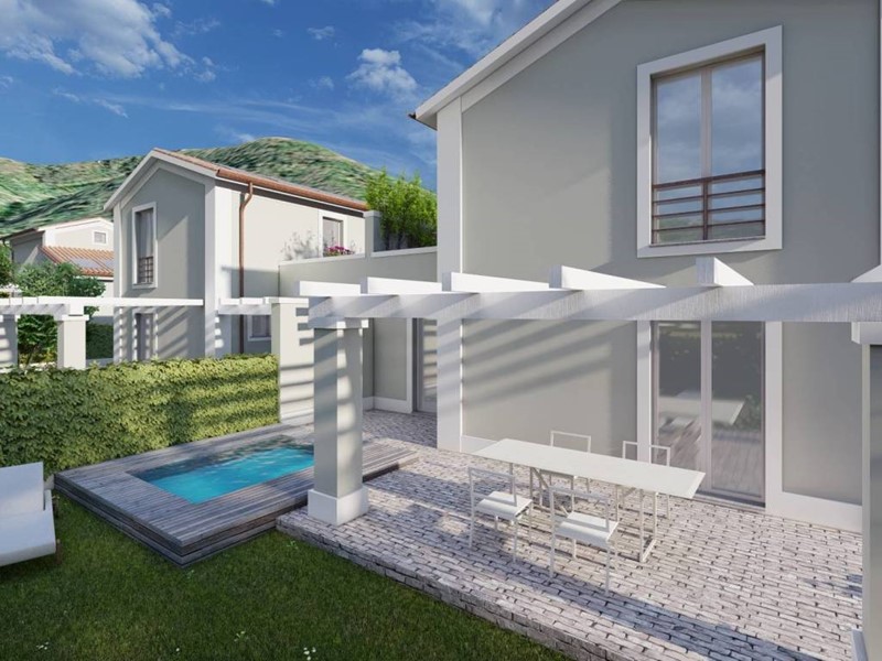 Casano, semi indipendente libera su tre lati, in fase di realizzazione villetta bifamiliare su 2 livelli: al piano terra ingresso, cucina, sala, camera e bagno. Al piano superiore 2 camere, 2 bagni e terrazza. Giardino perimetrale di circa 300mq con posti auto interni e pergolati pranzabili.