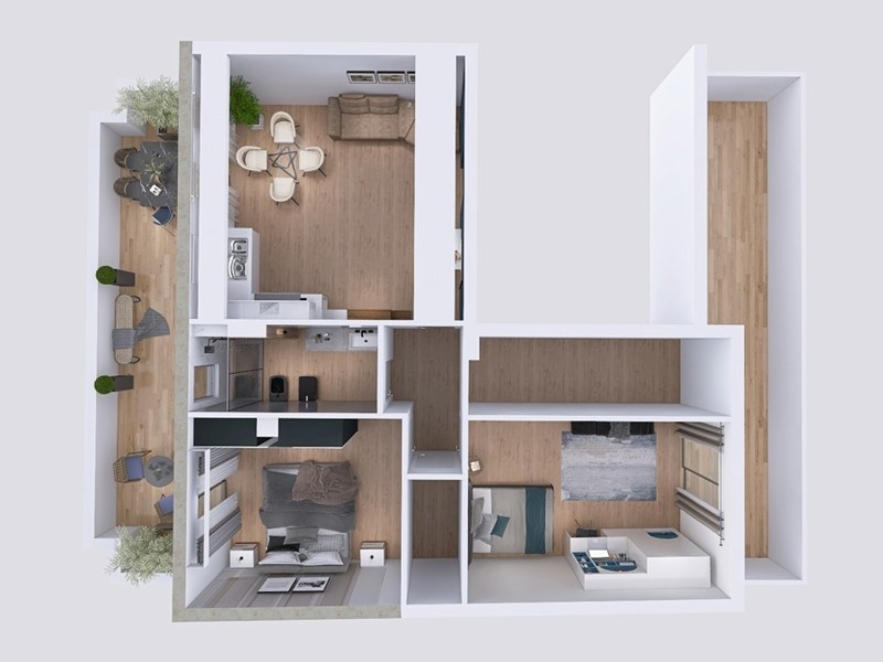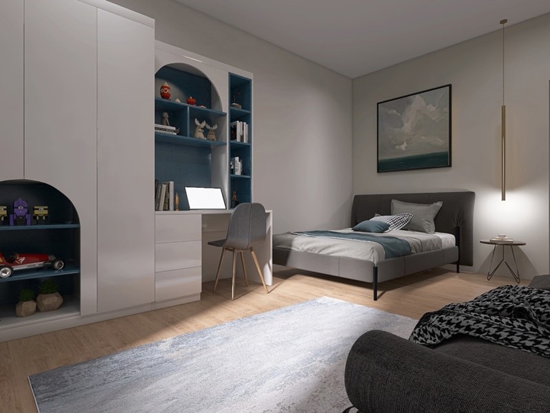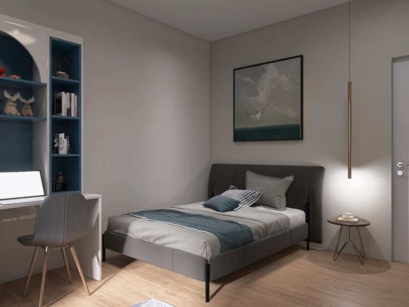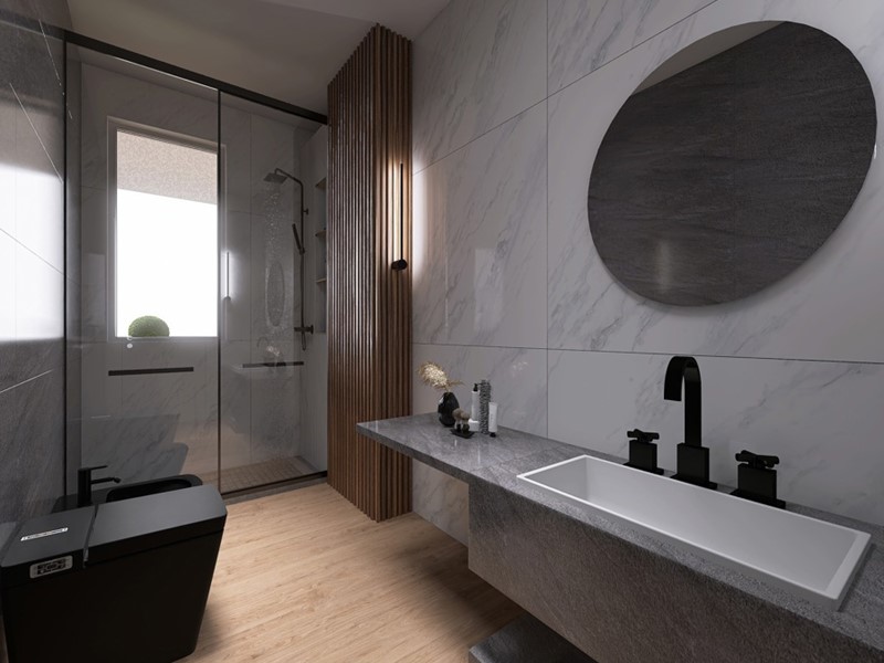 La proprietà dispone di due spaziose camere da letto, offrendo spazio sufficiente per una famiglia. I due bagni, anch'essi moderni e ben progettati, garantiscono comodità e privacy per gli occupanti.