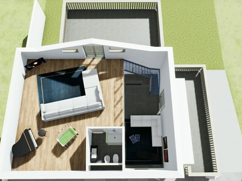 In zona centrale e residenziale, Villa singola con ampio terrazzo, doppi volumi ed ascensore privato. Al piano terra, di circa 128mq., troviamo un open space dal quale si accede alla cucina ed alla zona pranzo, mediante disimpegno si accede alla zona notte composta da camera matrimoniale, cameretta e bagno. Mediante scala o ascensore si accede al piano interrato, circa 100 mq., dove la cantina si trasforma in una zona living con locali multiuso, bagno ed accesso al giardino mediante un loggiato, mentre all'ultimo piano, mansardato, circa 68 mq., troviamo un terrazzo di oltre 30mq. con affaccio sul giardino. L'immobile, da ultimare, sitrova ad uno stato di grezzo avanzato.