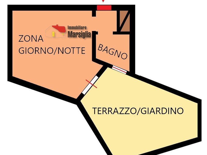 Al suo ingresso veniamo accolti da un piccolo disimpegno dove troviamo un armadio a muro, soggiorno con cucina a vista adibito a zona giorno e notte ed infine bagno con doccia e finestra.