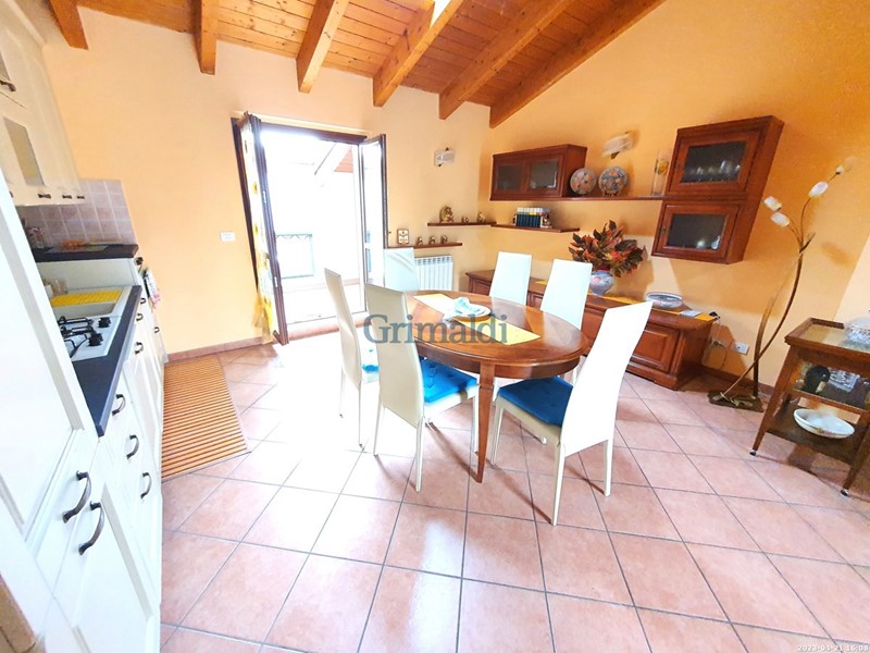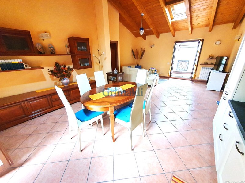 L'appartamento, che ha un'altezza del soffitto generosa, è travi a vista ed è composto da un ingresso su un ampio open space (soggiorno e cucina abitabile) che permette di avere una zona conversazione, una zona pranzo e un ampio angolo cottura.