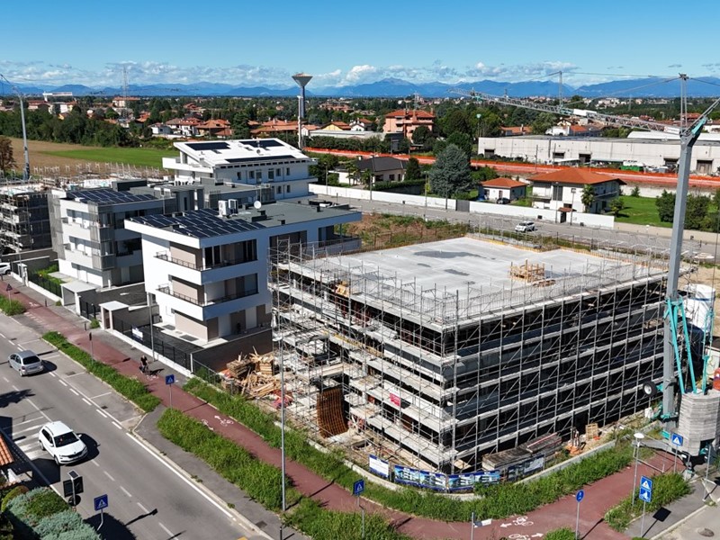 MAESTRALE HOME è un edificio di nuova costruzione posto in un comparto residenziale di Parabiago di ultima realizzazione, ricco di verde e molto richiesto.\nL'ambito di intervento, denominato and quot;il Parco di via Galilei and quot;, consiste in un nuovo sviluppo urbanistico residenziale, che vede la realizzazione di nuovi edifici abitativi tra ville e piccole palazzine, oltre un parco giochi comunale con sistema di video sorveglianza, piste ciclabili e nuovi parcheggi.\nLa zona, molto aperta ed ariosa, è favorevole per la vicinanza della stazione, oltre che per i collegamenti ai paesi limitrofi.\nMAESTRALE HOME è un progetto volto a soddisfare coloro che amano vivere la propria casa, particolare attenzione è stata data ad ogni ambiente di ciascuna abitazione, sia interno grazie alle generose metrature, con grandi locali funzionali e luminosi, sia agli spazi esterni come i grandi giardini degli appartamenti ai piani terra oppure alle grandi terrazze coperte delle abitazioni dei piani superiori.\nMAESTRALE HOME inoltre sarà realizzata con materiali costruttivi e tecnologie all'avanguardia dell'edilizia moderna, oltre ad essere certificata struttura antisismica, vanterà elevate prestazioni in tema di risparmio energetico, classificandosi in CLASSE A.\nIl capitolato di alta gamma prevede impianto di riscaldamento e raffrescamento a pavimento mediante pompa di calore FULL ELECTRIC, VMC ventilazione meccanica controllata, impianto di smart domotica, impianto fotovoltaico delle parti comuni.\nMAESTRALE HOME sarà un edificio a impatto zero, senza emissione di Co2, motivo per cui si avranno ben tre vantaggi: 1- risparmio energetico e quindi riduzione dei costi; 2- sicurezza; 3- una casa che manterrà il valore nel lungo tempo in quanto a norma con le future normative in tema di inquinamento ambientale.\nMAESTRALE HOME si compone di soli sei appartamenti, disponibili abitazioni di tre locali o di quattro locali, con giardini o terrazzi, oltre cantine e box doppi.\n\nPIANO SECONDO E ULTIMO\nUNITA' 5: TRE LOCALI di 106 mq and euro; 335.000\nULTIMO PIANO - Appartamento suddiviso in grande soggiorno, dotato di un'importante parete finestrata, cucina abitabile oppure open space su richiesta dell'acquirente, camera matrimoniale, ampia camera singola, doppi servizi entrambi finestrati ed una grande zona disimpegno dove vi è possibile creare un'armadiatura a muro comoda anche per ospitare lavatrice ed asciugatrice. L'abitazione gode di tripla esposizione, est-sud-ovest, favolose sono le terrazze coperte, presenti sia nella zona living con vista sul parco che nel reparto notte, di ben 62 mq, donando signorilità e valore a questa soluzione. \n\nBOX DOPPI and euro; 40.000\nCANTINA and euro; 5.000\nSPESE ALLACCI E ACCATASTAMENTO and euro; 5.000\n - Maggiori Dettagli: Climatizzato, Porta blindata, Cucina Abitabile