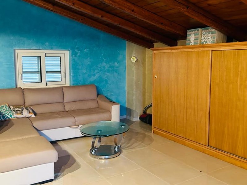 The first attic floor is accessed by an external staircase and is composed of a single room: living room - kitchen with island, sleeping area and a bathroom. The maximum height is 3.25 m and the minimum height is 1.90 m.