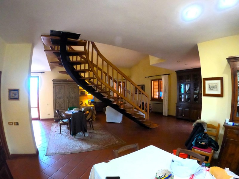 Si arriva al piano superiore tramite una bellissima scala in legno, dove troviamo uno studio, un altro ampio salone con camino e con accesso ad altra terrazza abitabile.