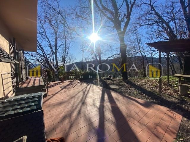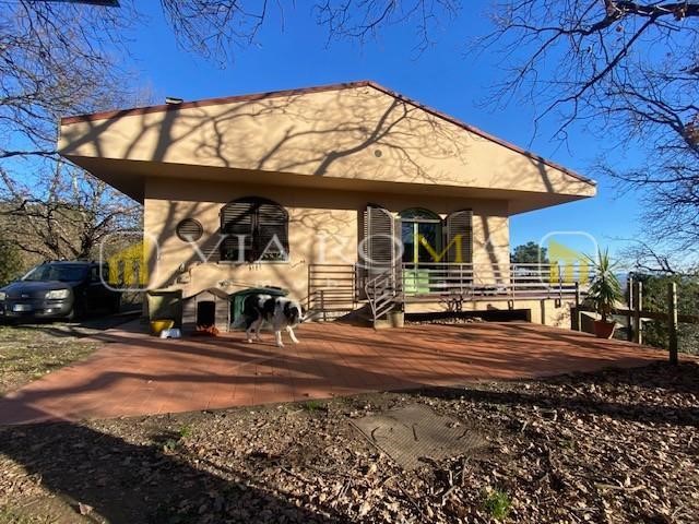 Casa singola disposta tutta su un piano, si compone di: ingresso, soggiorno, cucina abitabile, tre camere bagno e ripostiglio, ampia terrazza intorno all'abitazione, ampio terreno a corredo di oltre 6.000 ma, a bosco e oliveto, piccola dependance restaurata. Splendida posizione panoramica, possibilità di creare una piscina,